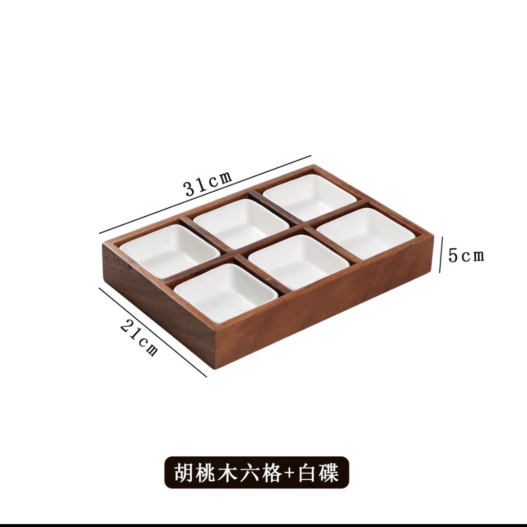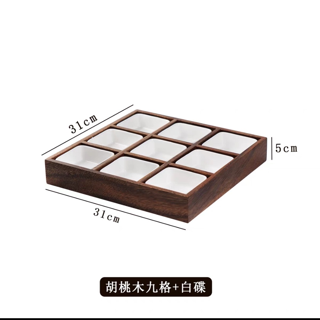• 호두나무 9칸 상자 + 도자기 흰색 접시