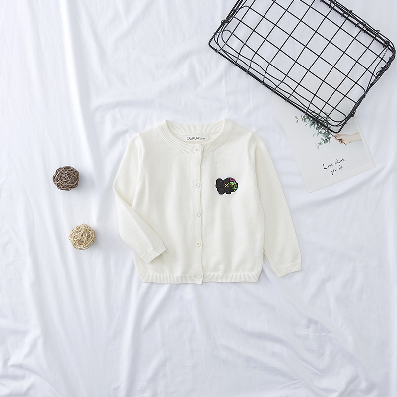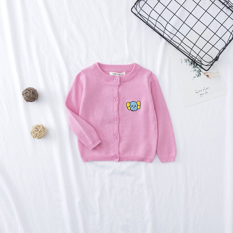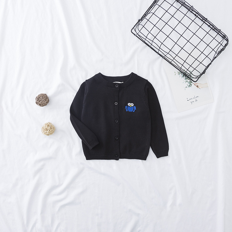 19 어린이 스웨터 새로운 봄과 가을 어린이 스웨터 카디건 라운드 넥 만화 자수 코튼 니트 아기 스웨터