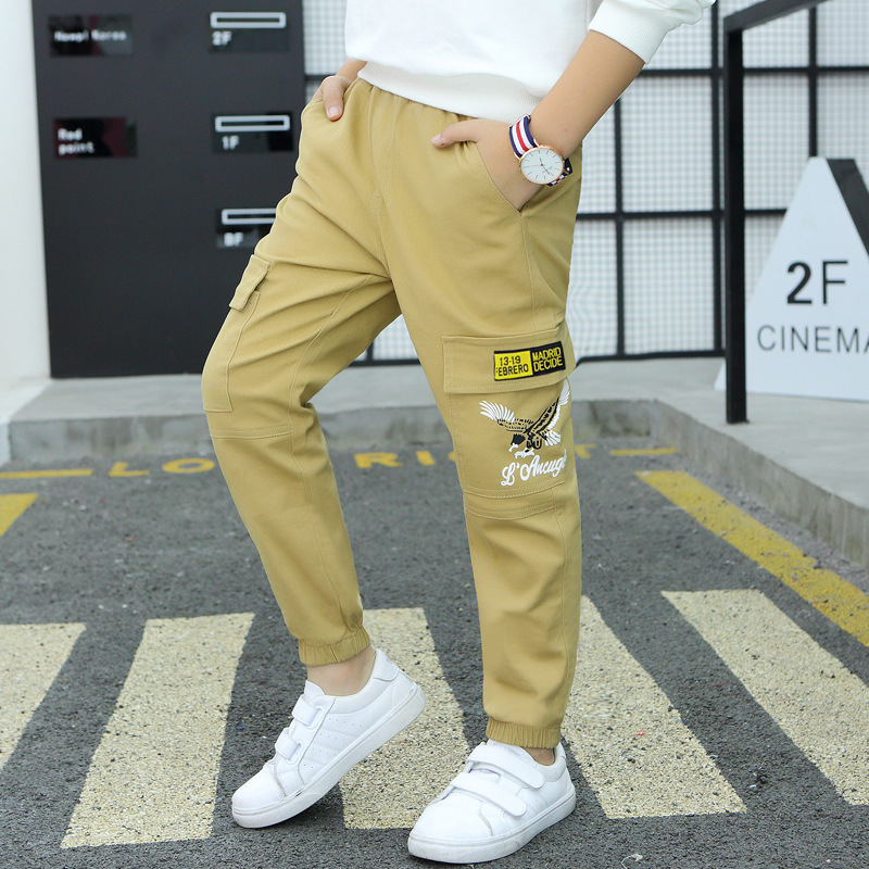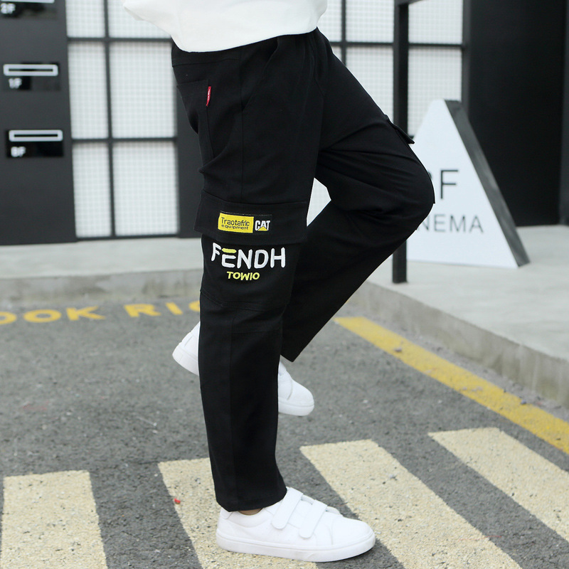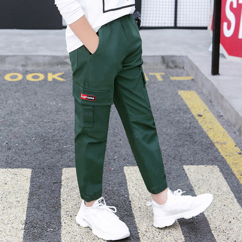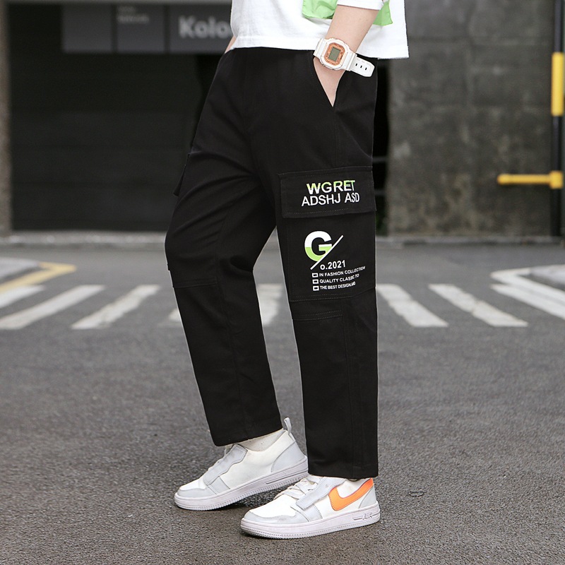아동복 소년 작업복 2024 새로운 아동 봄, 가을 캐주얼 바지 중대형 아동 가을 의류 유행 긴 바지