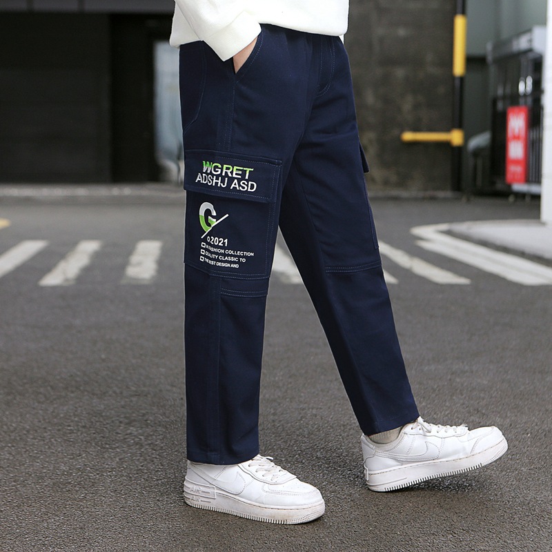 아동복 소년 작업복 2024 새로운 아동 봄, 가을 캐주얼 바지 중대형 아동 가을 의류 유행 긴 바지스토어 가기