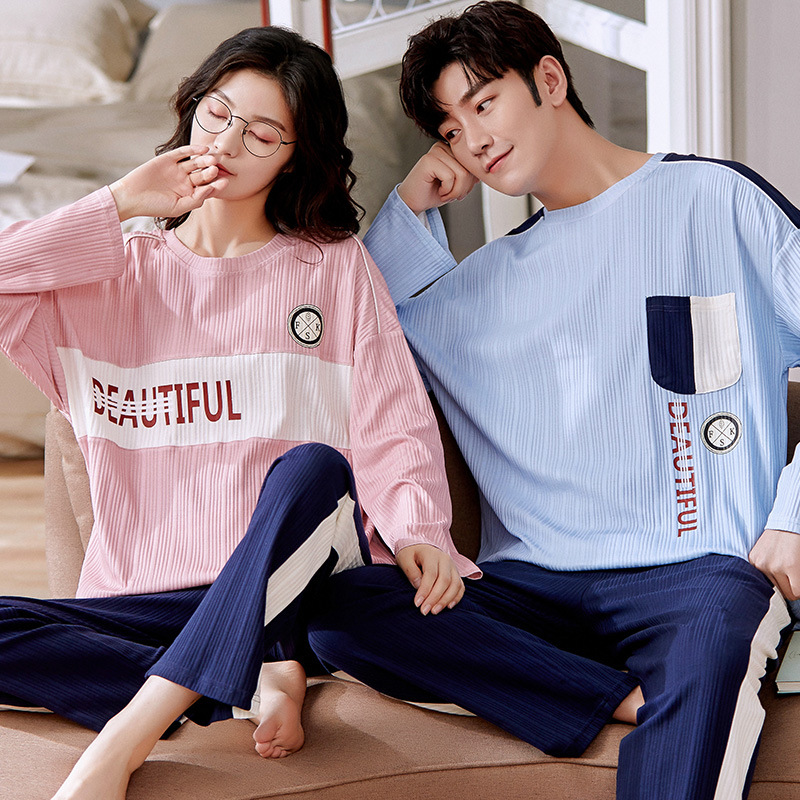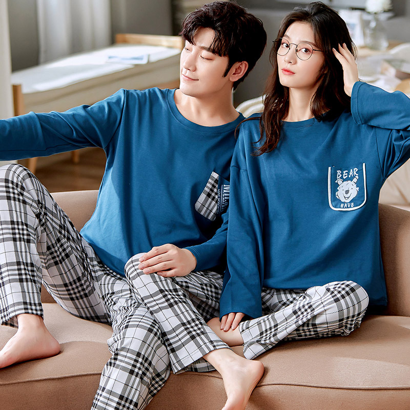 2025년 신상품 커플용 순면 긴팔 봄가을 한국 스타일 만화 캐릭터 세트 홈웨어 공장 직판스토어 가기