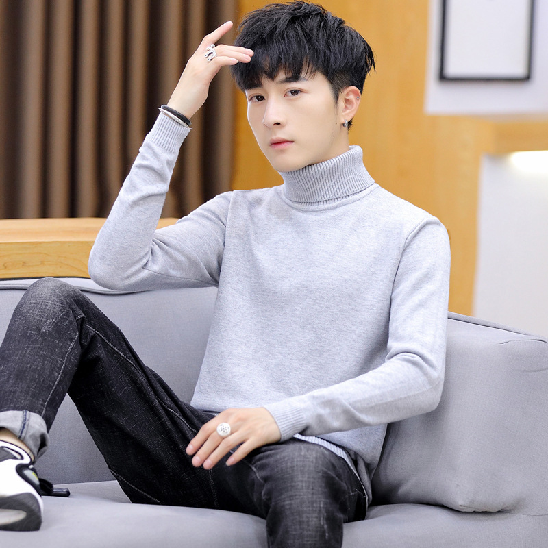 2022 가을 새 남자 단색 터틀넥 스웨터 한국 캐주얼 슬림 스웨터 남성베이스 셔츠 도매스토어 가기