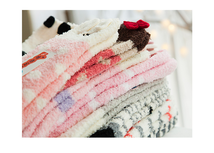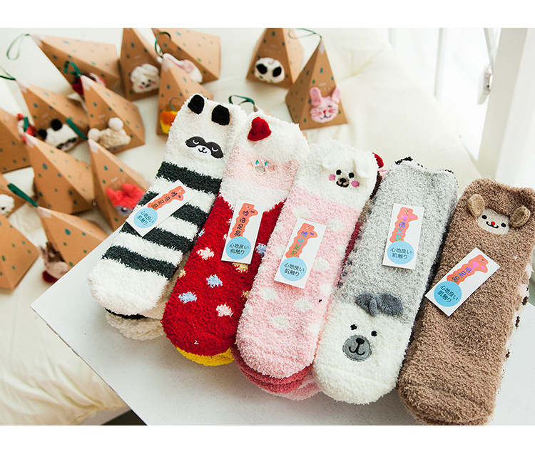 일본식 크리스마스 양말 수 놓은 스테레오 홈 산호 양털 만화 두꺼운 수건 바닥 반 양털 여성 양말스토어 가기