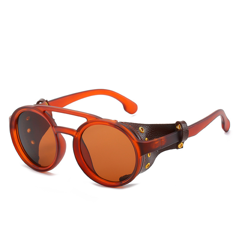 새로운 패션 펑크 가죽 버클 PC 선글라스 안티-UV 눈 보호 맞춤형 선글라스 거리 사진 남녀 안경