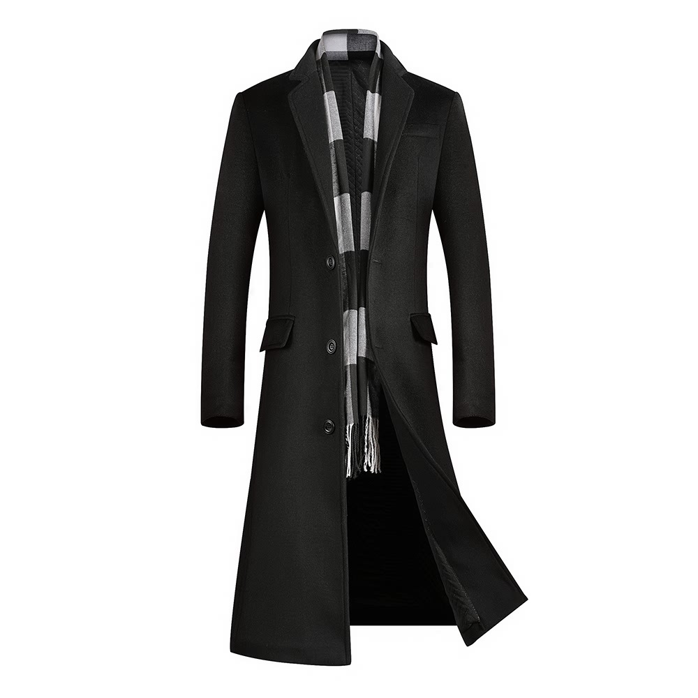 2023 새로운 모직 코트 남자의 긴 두꺼운 모직 코트 비즈니스 캐주얼 젊은 남성 코트