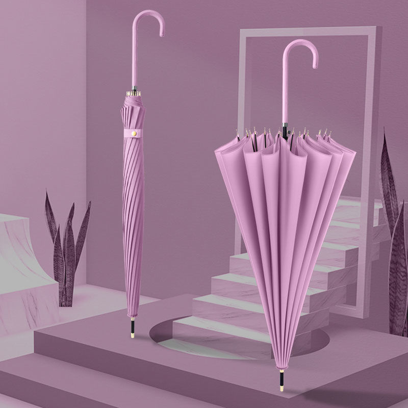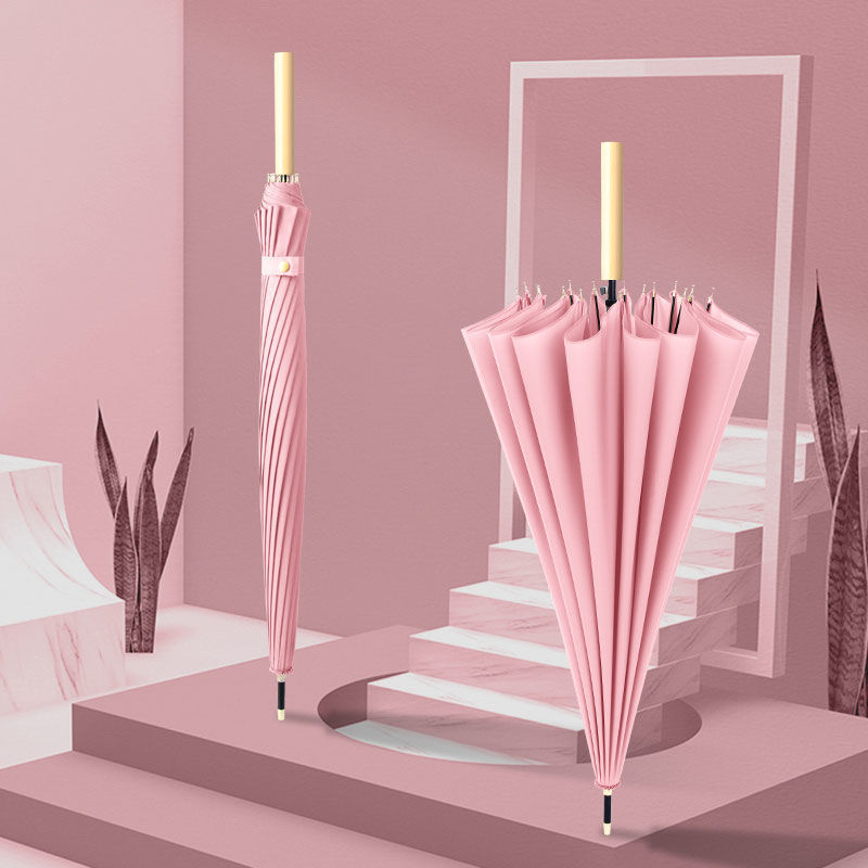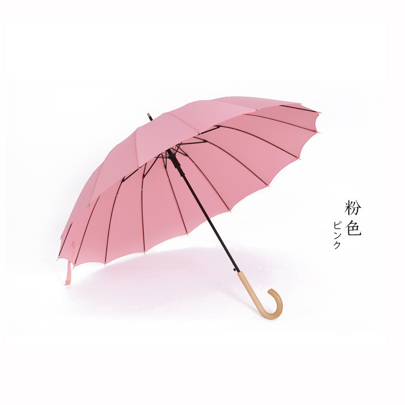 한국 16 뼈 나무 손잡이 작은 신선한 우산 숙녀 단색 긴 손잡이 맑은 우산 인쇄 광고 로고 생성