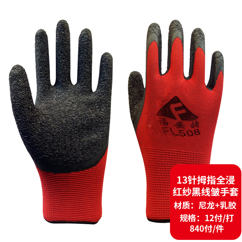 13 핀 나일론 담근 라텍스 주름 장갑 노동 장갑 내마모성 미끄럼 방지 통기성 고무 장갑 제조업체스토어 가기