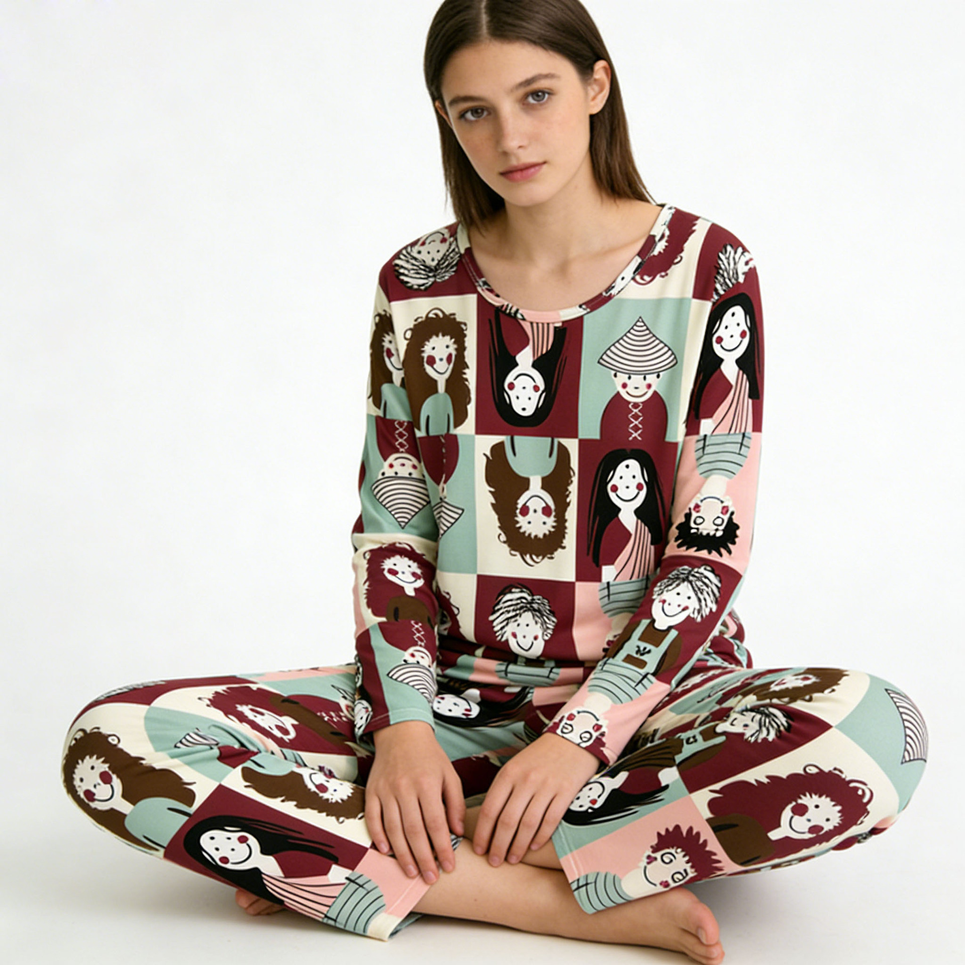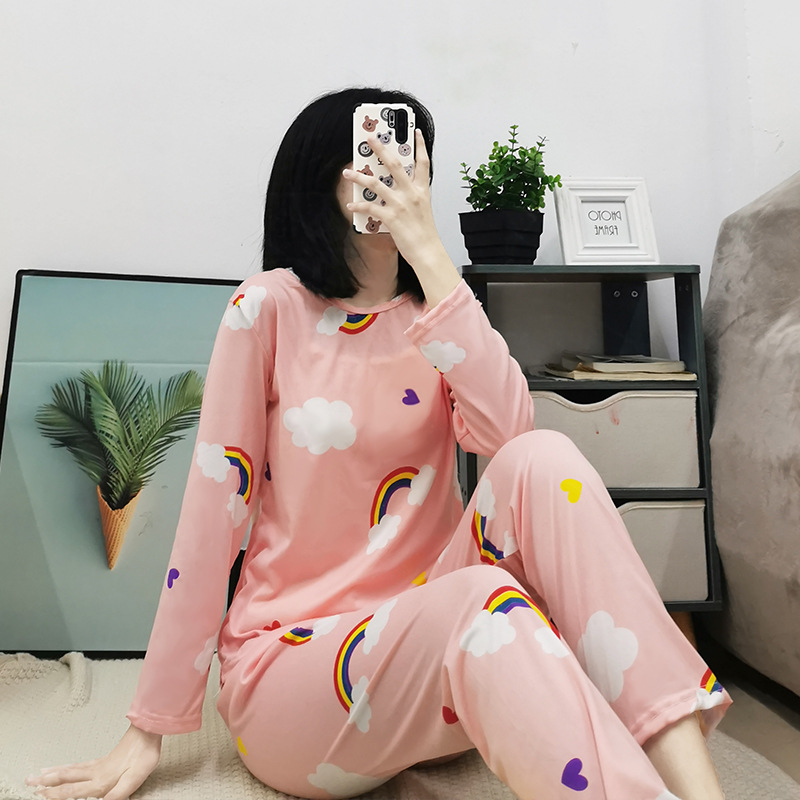 도매 봄과 가을 겨울 잠옷 여성의 얇은 긴 소매 바지 만화 귀여운 바람 작은 학생 홈 의류 세트
