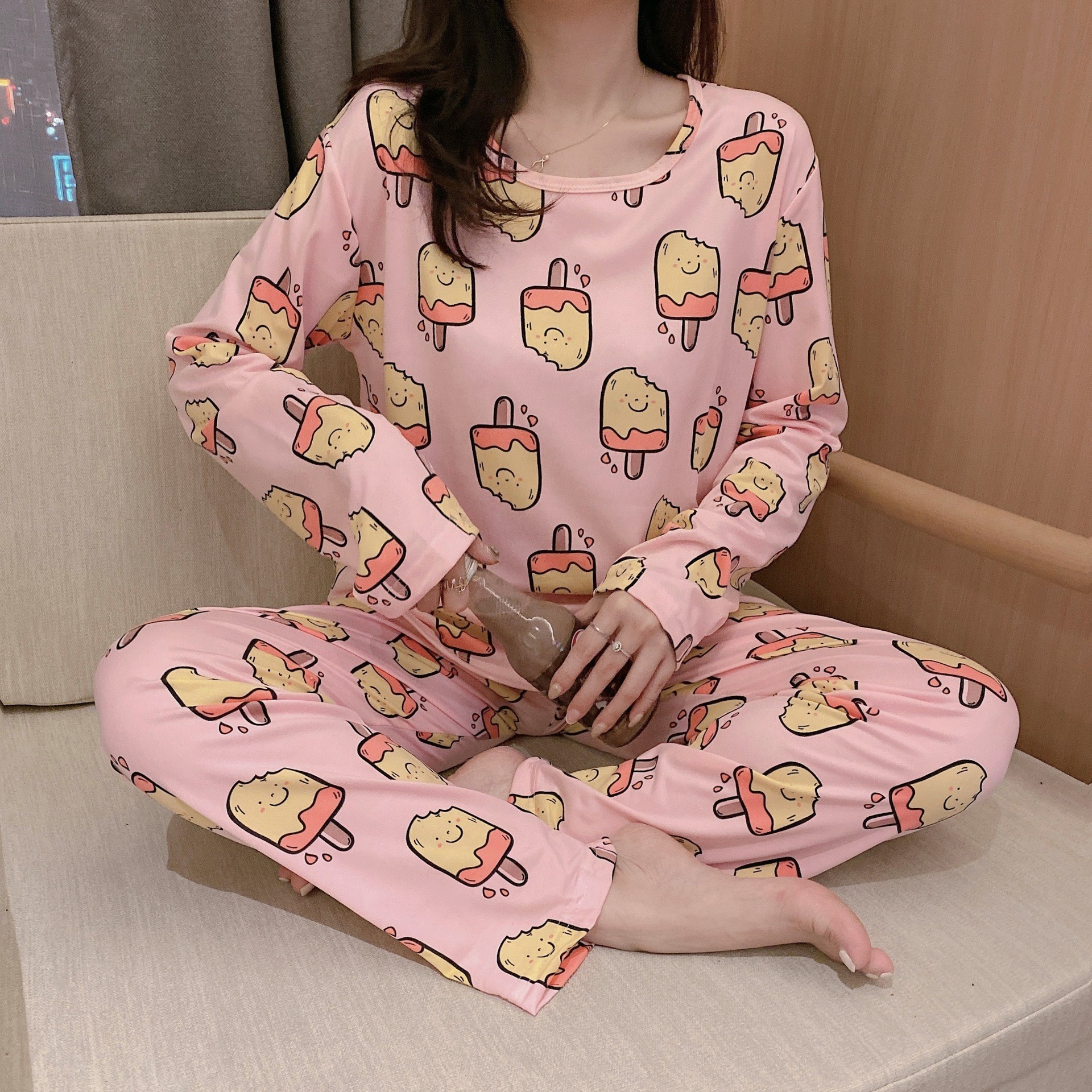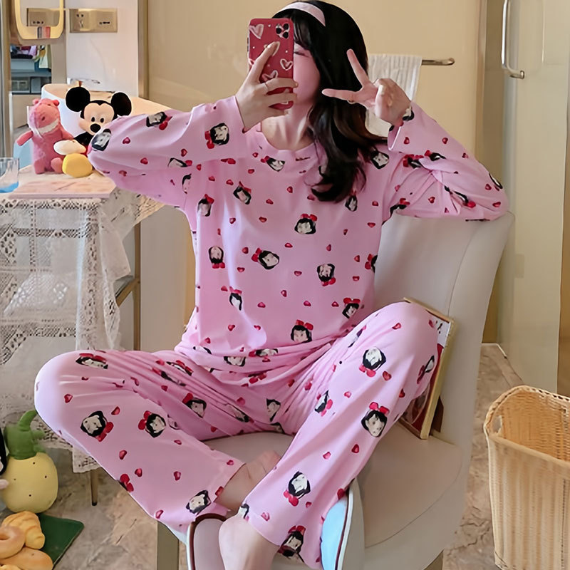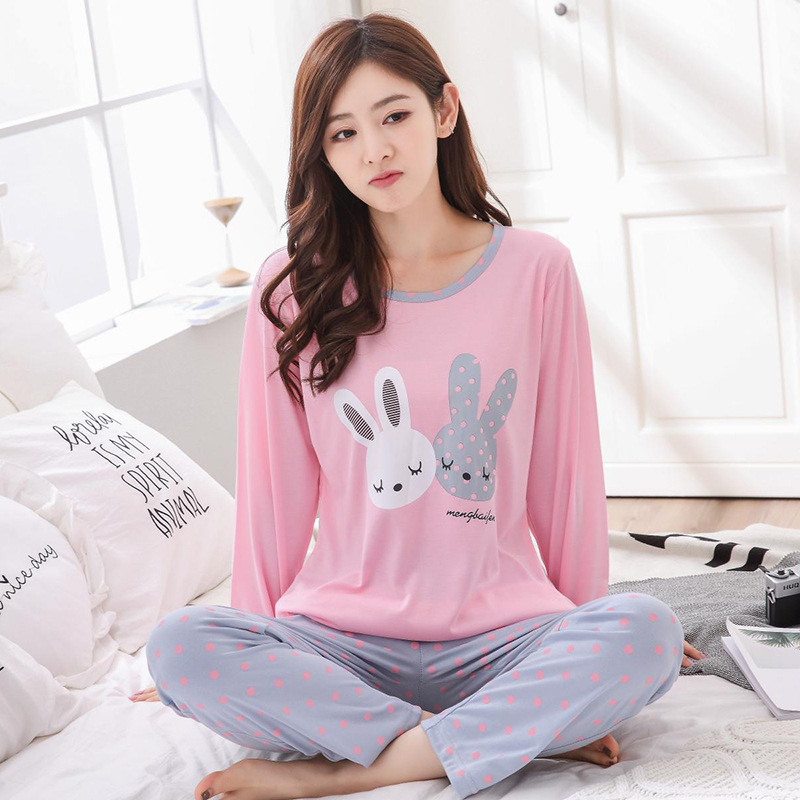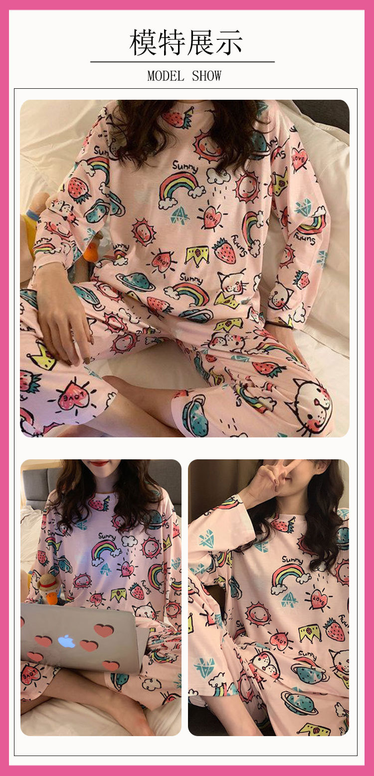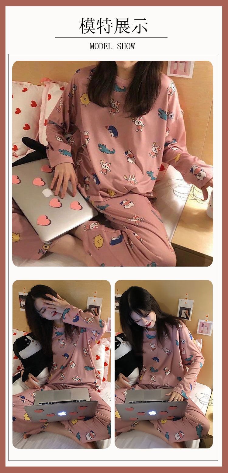 도매 봄과 가을 겨울 잠옷 여성의 얇은 긴 소매 바지 만화 귀여운 바람 작은 학생 홈 의류 세트스토어 가기
