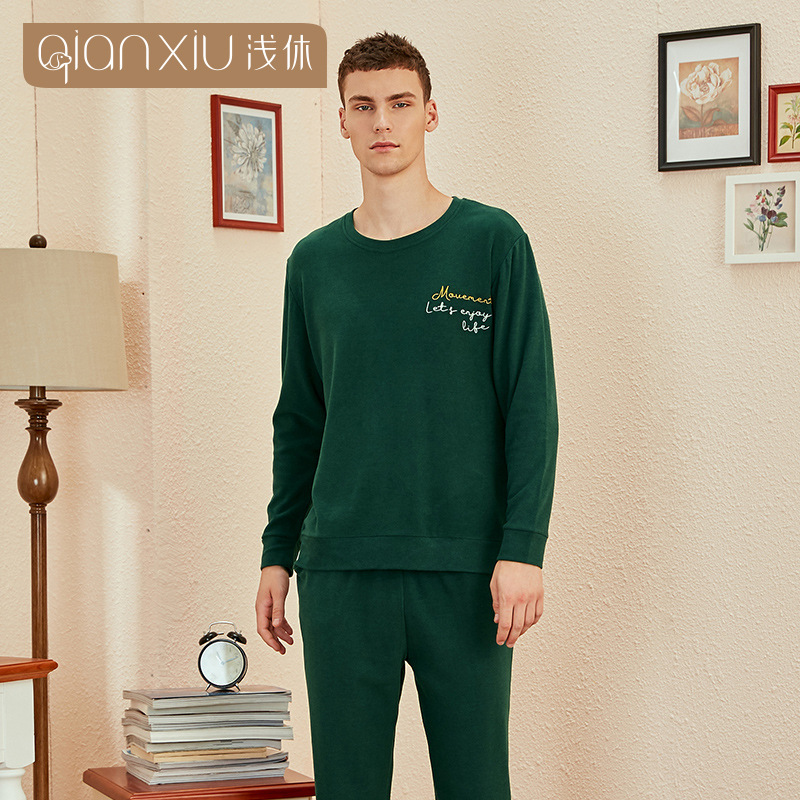 남자의 가을 새로운 대나무 섬유 잠옷 남자의 따뜻한 양면 샌딩 가정 옷