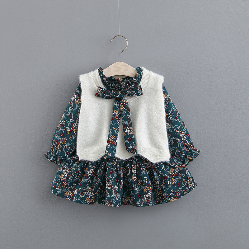 아동복 도매 273 여성 보물 의류 밍크 벨벳 조끼 + 긴 소매 원피스 셔츠 머리 세대의 투피스 세트스토어 가기