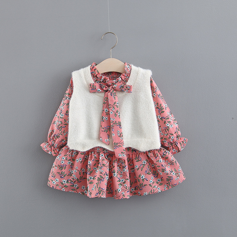 아동복 도매 273 여성 보물 의류 밍크 벨벳 조끼 + 긴 소매 원피스 셔츠 머리 세대의 투피스 세트