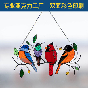 跨境新款小鸟彩绘挂饰独立站春鸟窗饰挂件家居母亲节礼物鸟群挂饰