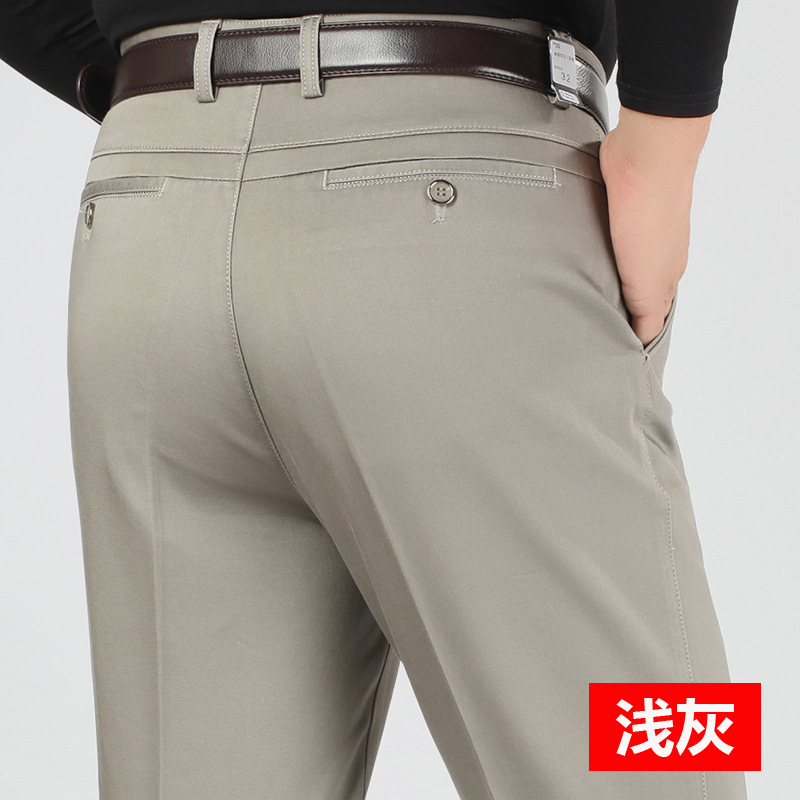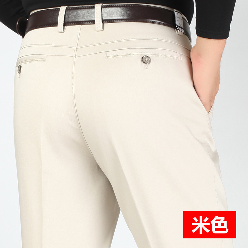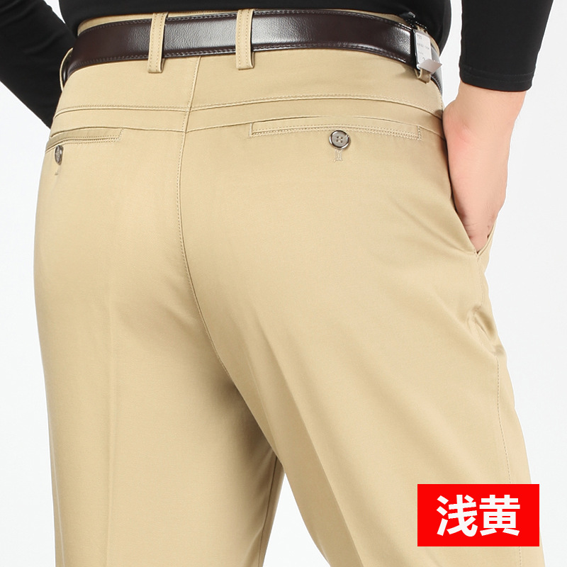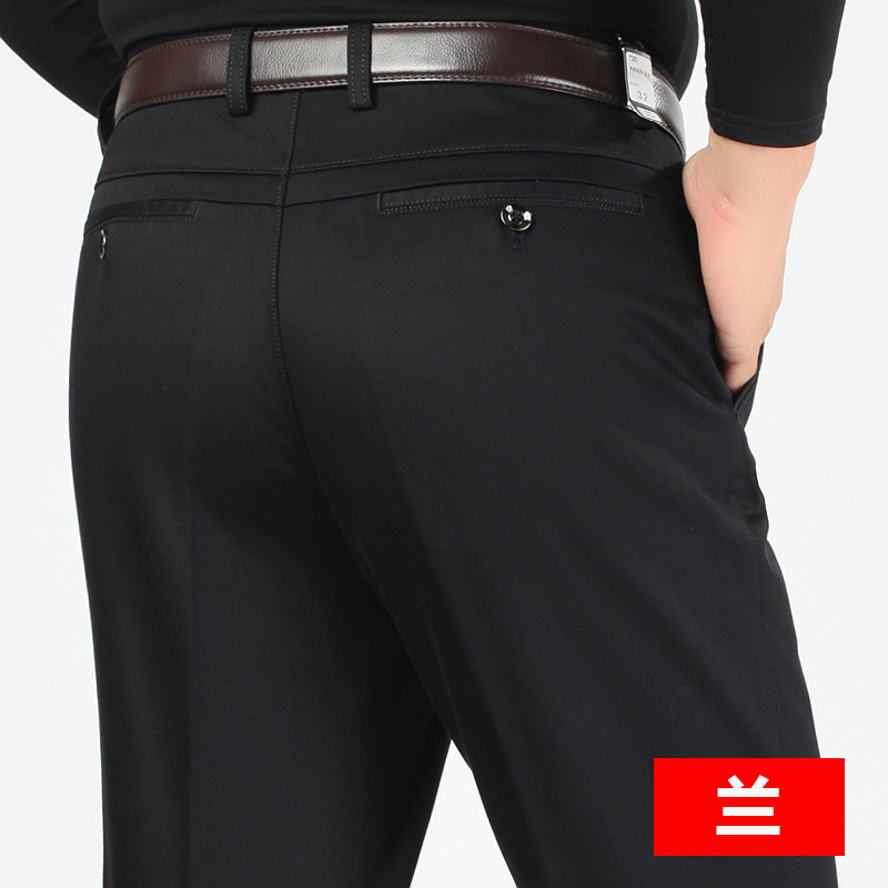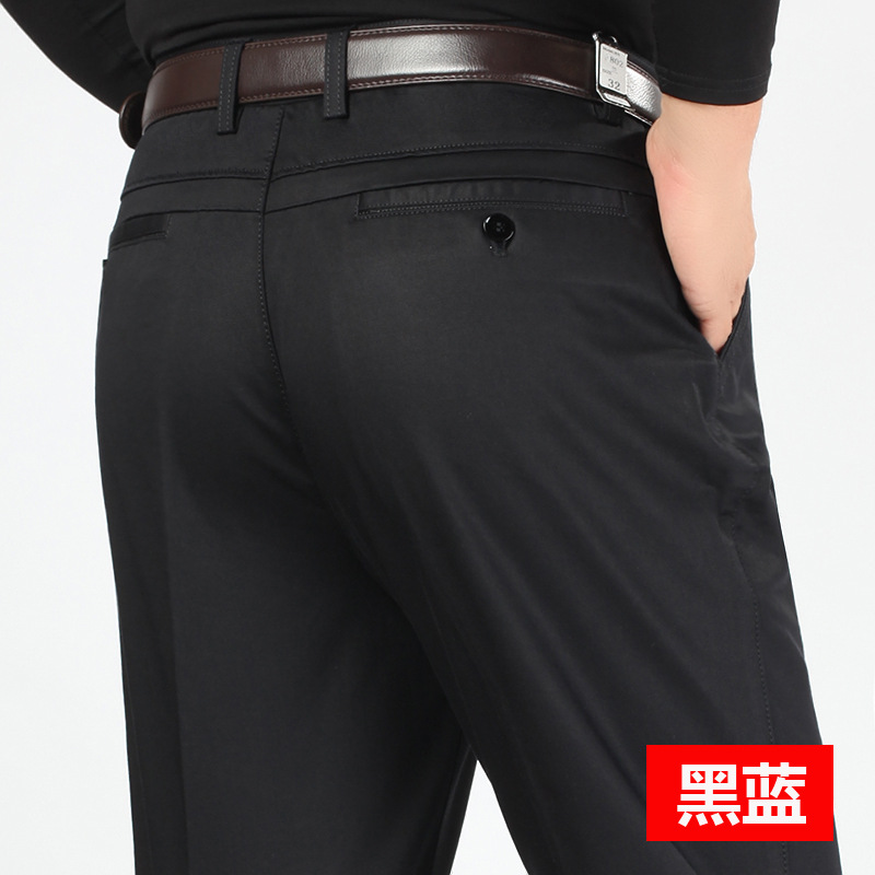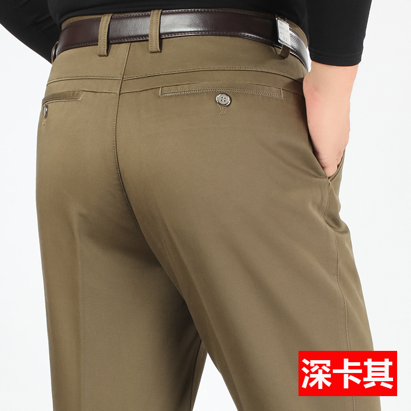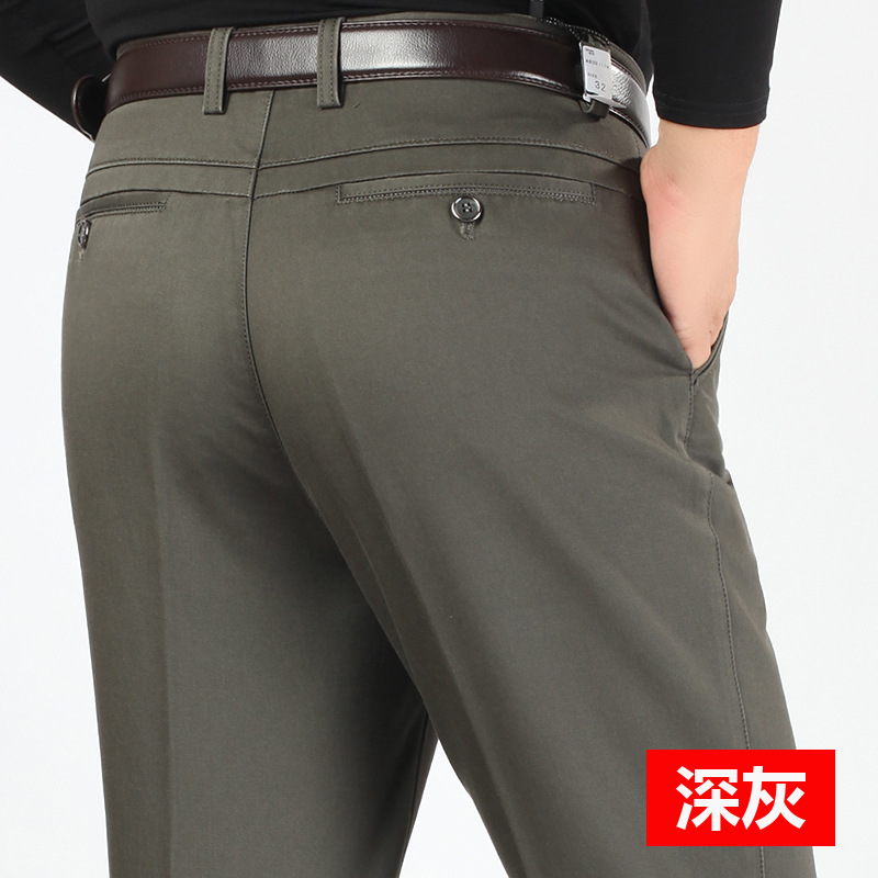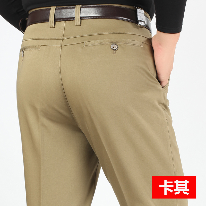 새로운 가을과 겨울 새로운 남성 캐주얼 바지 두꺼운 하이 웨이스트 스트레치 면 비즈니스 느슨한 스트레이트 중년 남성 긴 바지스토어 가기
