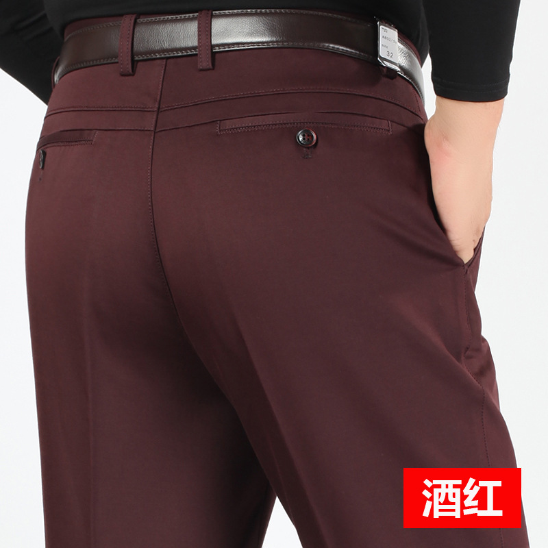 새로운 가을과 겨울 새로운 남성 캐주얼 바지 두꺼운 하이 웨이스트 스트레치 면 비즈니스 느슨한 스트레이트 중년 남성 긴 바지