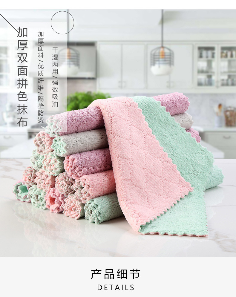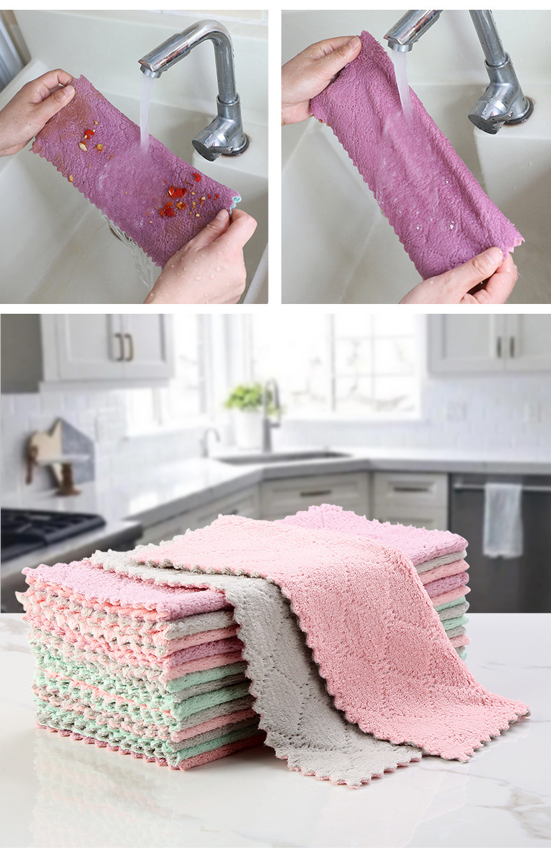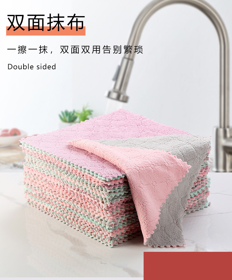 더블 레이어 산호 양털 식기 세척 천 식탁보 기름없는 행주 게으른 행주 린트-청소하기 쉬운 핸드 타월