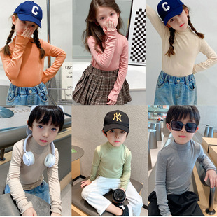 (清款) 女童磨毛半高领打底衫洋气百搭男童长袖T恤批发春秋
