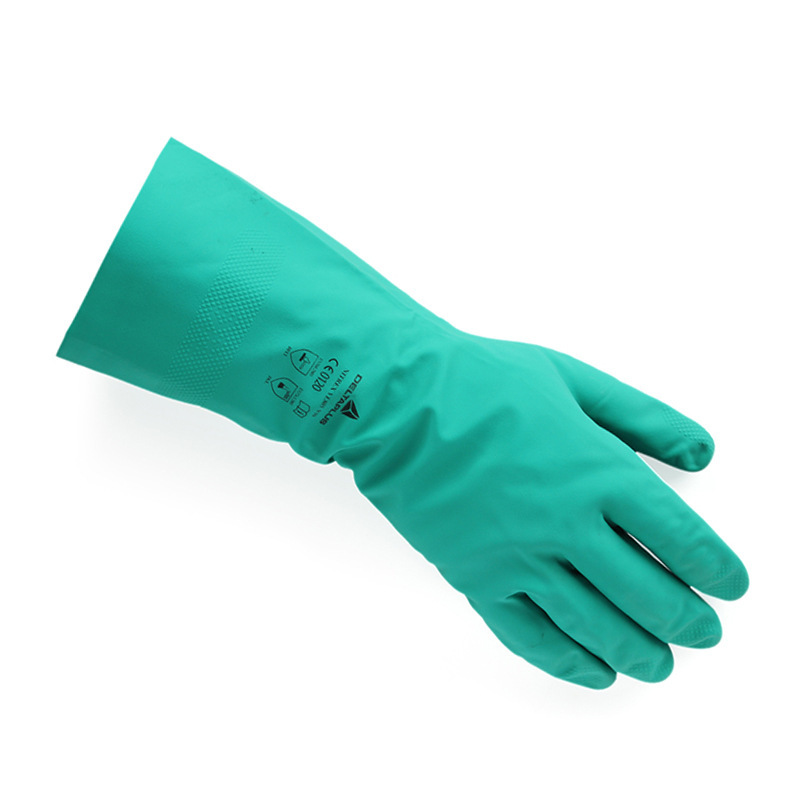 델타 201803 녹색 니트릴 화학 방지 장갑 산 및 알칼리 방지 장갑 열 보호 라텍스 면화 심기