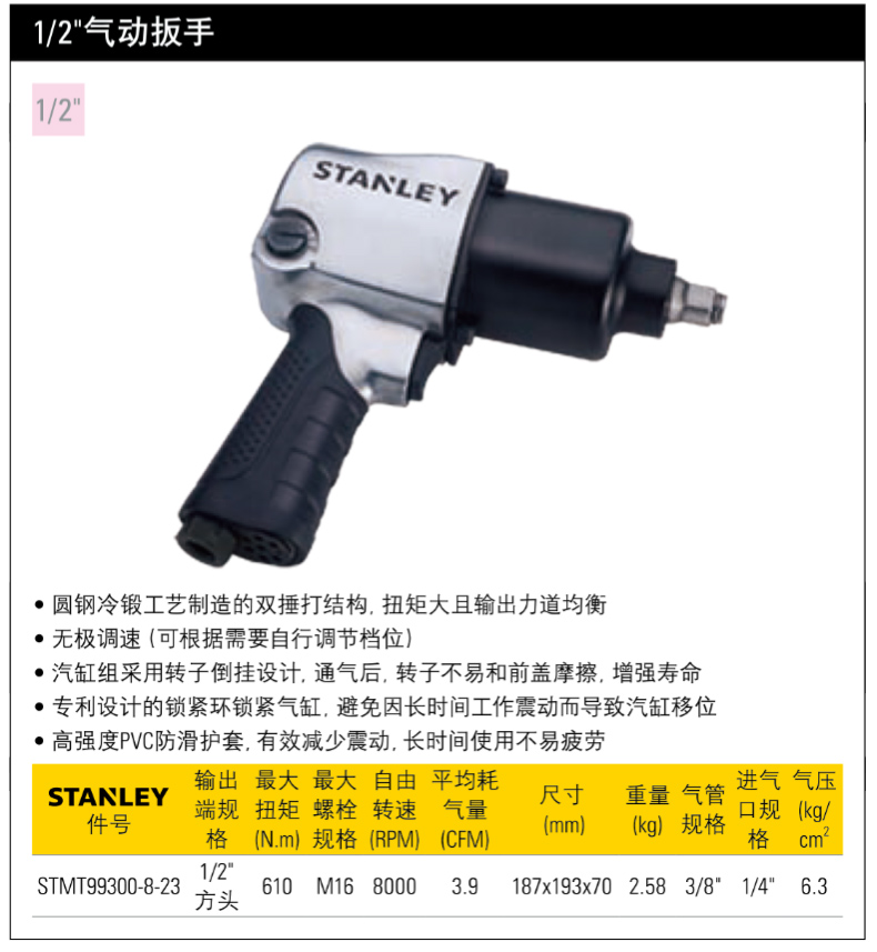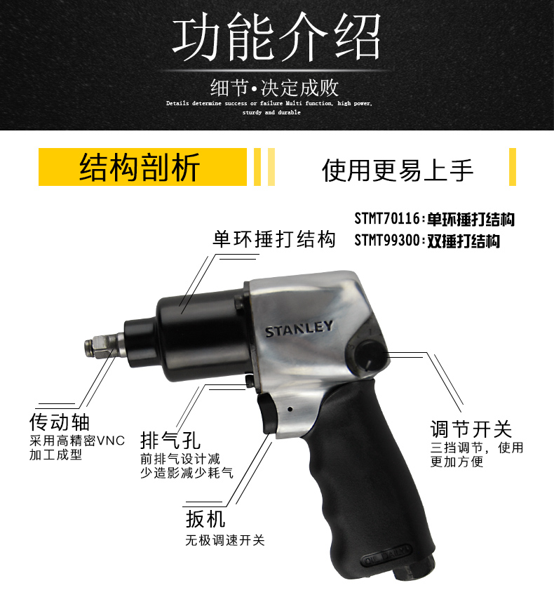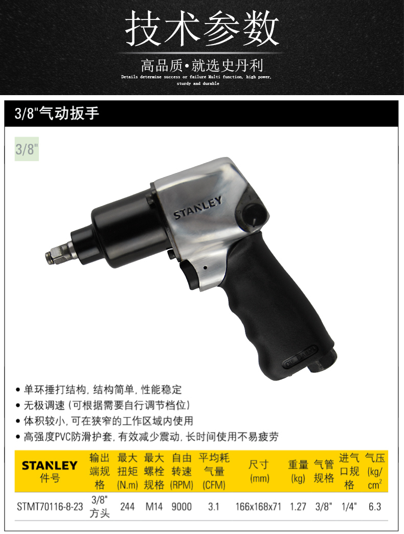 스탠리 1/2 공압 렌치 소켓 산업용 등급 3/8 자동 유지 보수 강력한 소형 에어건 99300/70116스토어 가기
