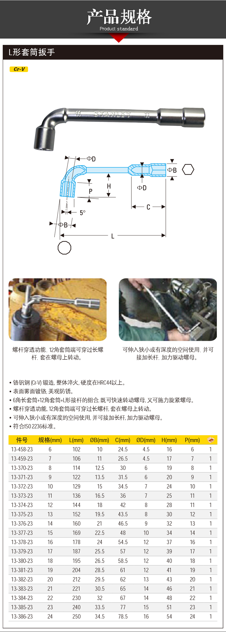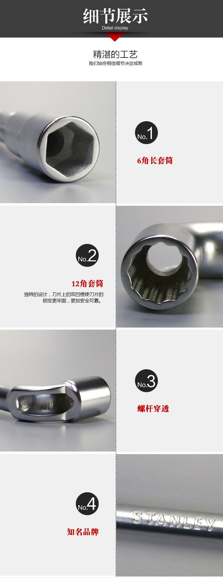 스탠리 L형 소켓 파이프 렌치 다기능 육각 12 각 소켓 자동 수리 도구 13-371