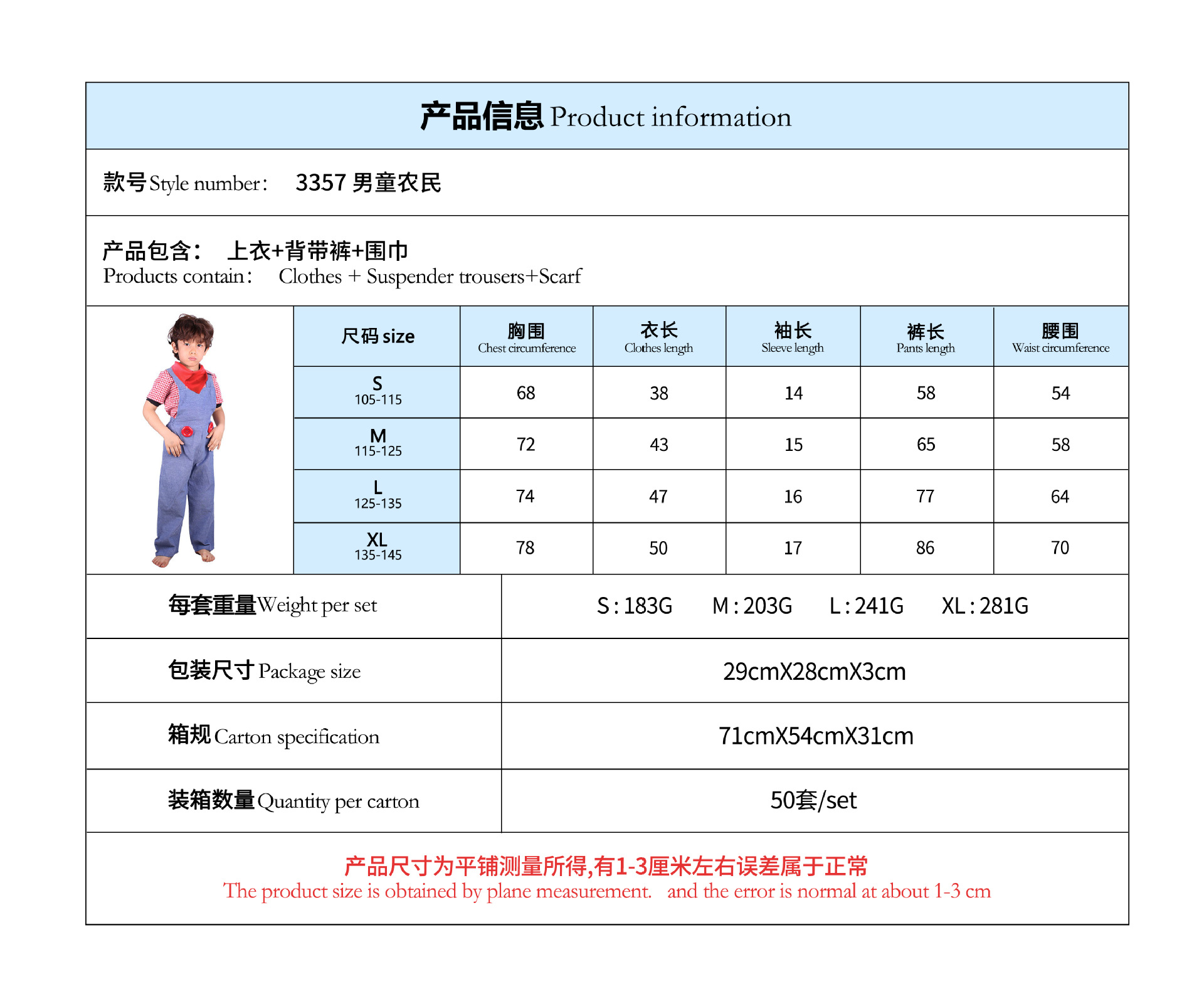 어린이 소년 농부 작업복 전문 드레스 코스프레 캐릭터 드레스 공연 무대 의상 패션쇼