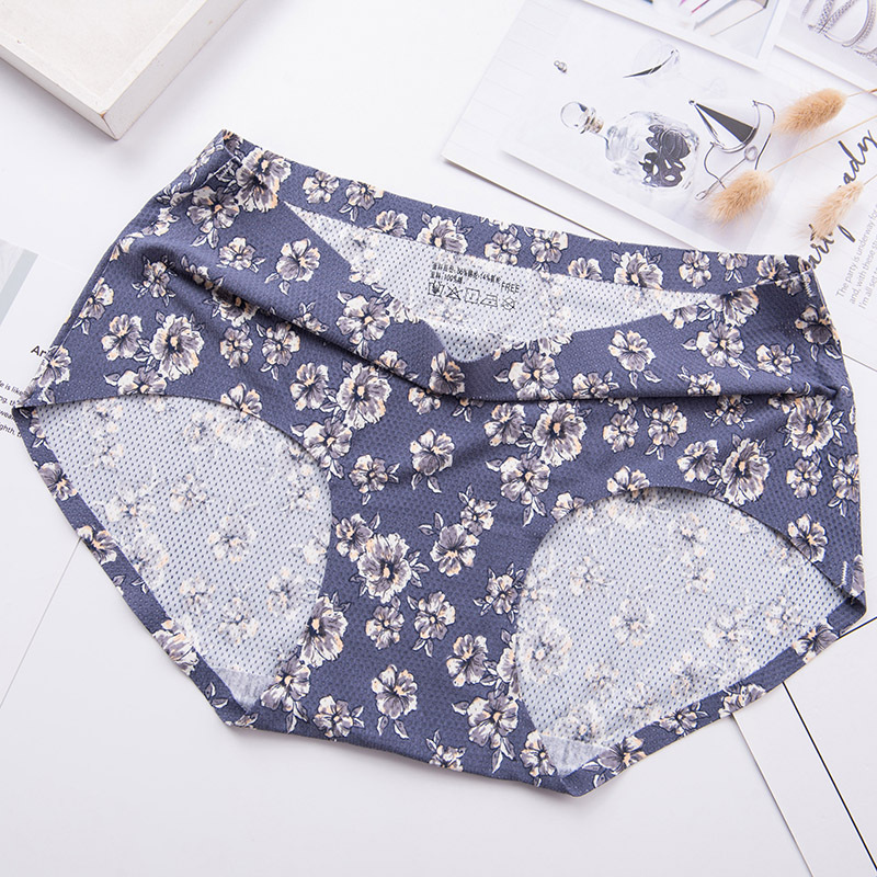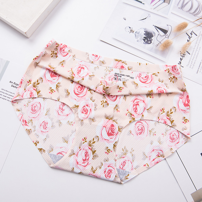 일본 스타일 소녀의 만화 아이스 실크 속옷 여성용 원피스 원활한 통기성 중간 허리 면 가랑이 인쇄 삼각형 속옷