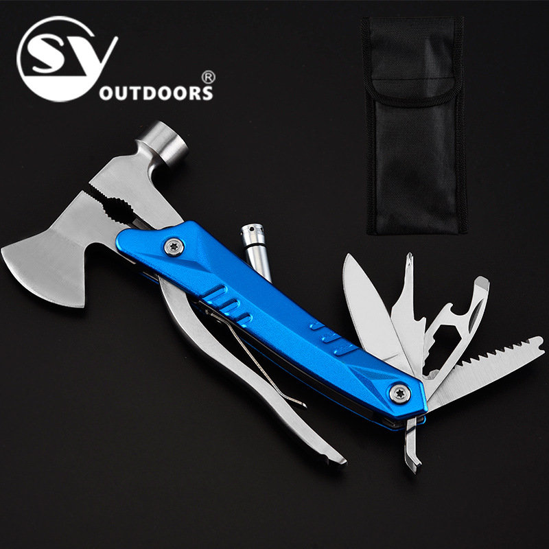 공장 직접 스테인레스 스틸 다기능 도끼 헤드 해머 자동차 안전 망치 LED 야외 캠핑 생존 도구