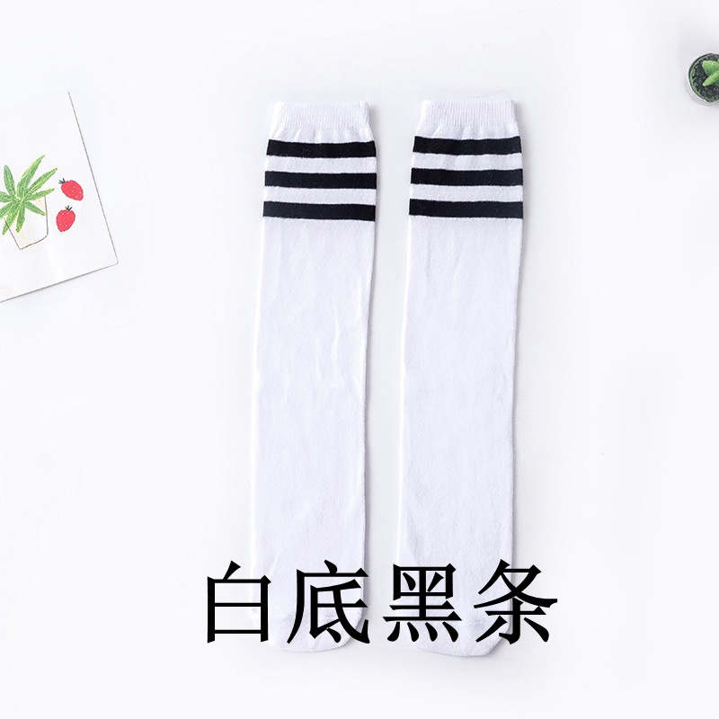 여아 미드 튜브 양말 학생 교복 3 바 무릎 위 스타킹 소년 줄무늬 빗질 면화 스타킹 높은 양말