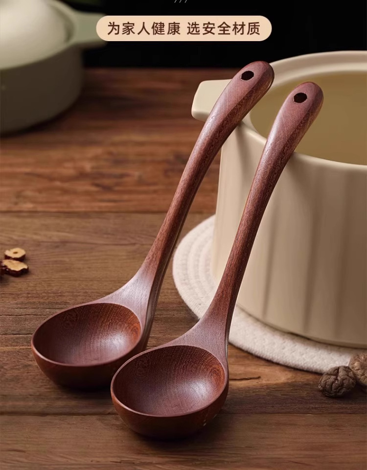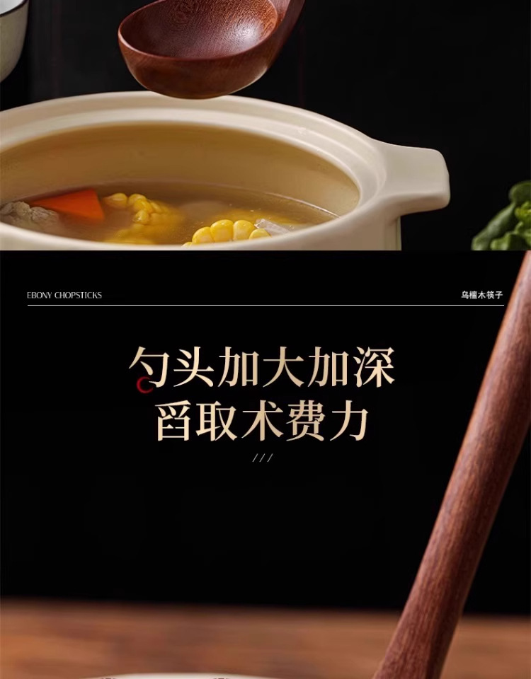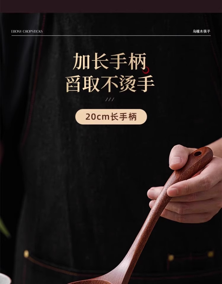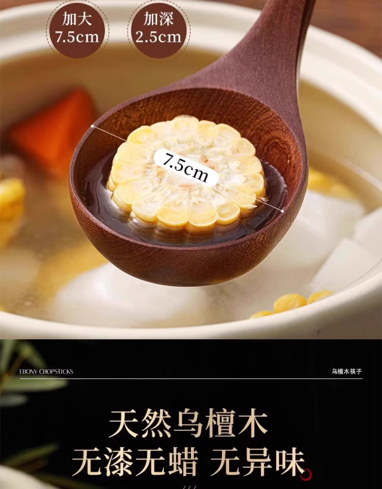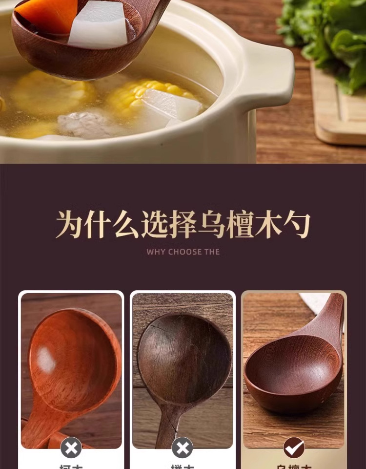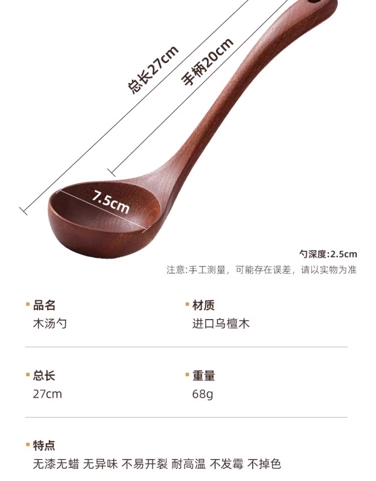 • [업그레이드 모델 - 두꺼운 직선 손잡이] 흑단 나무 수프 스푼 28 cm*7.5 cm