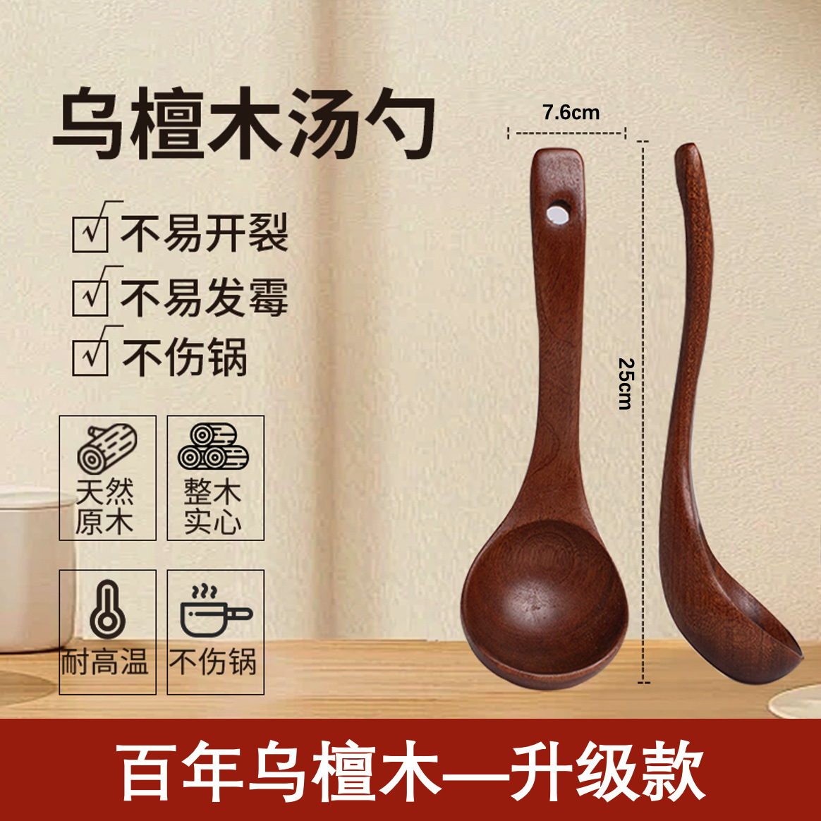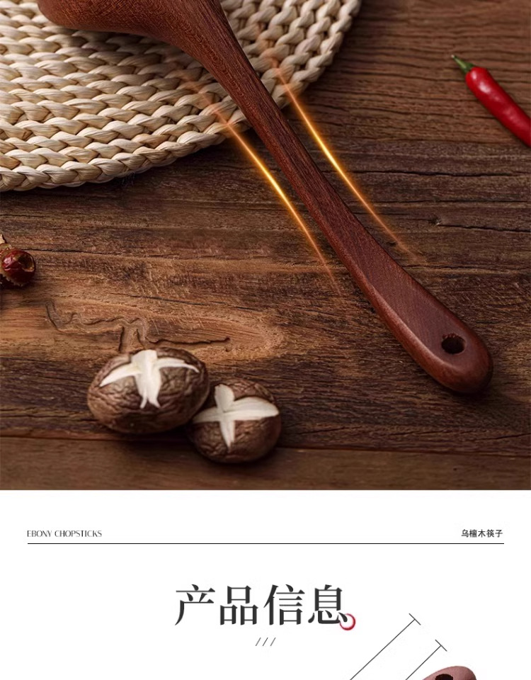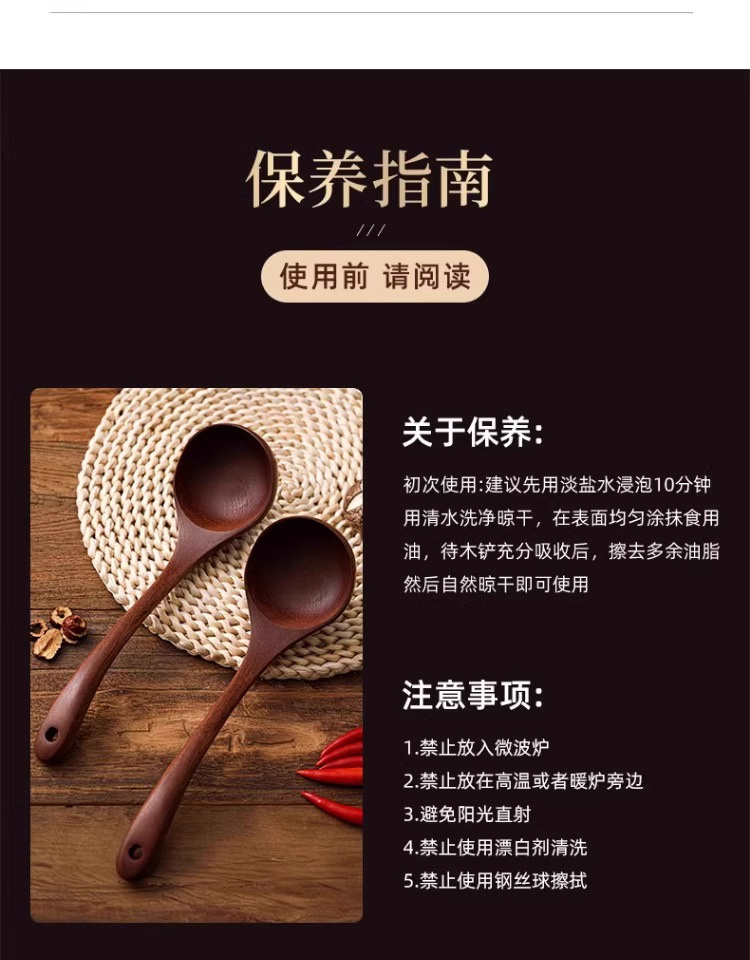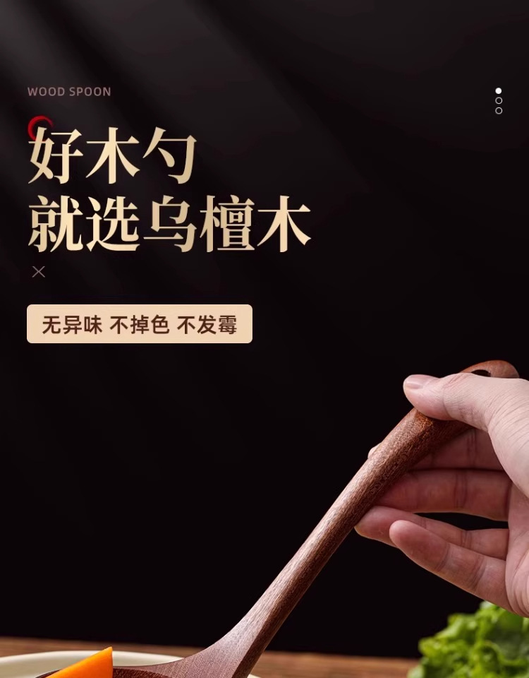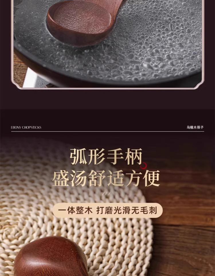 • [업그레이드 모델 - 두꺼운 직선 손잡이] 흑단 나무 수프 스푼 28 cm*7.5 cm