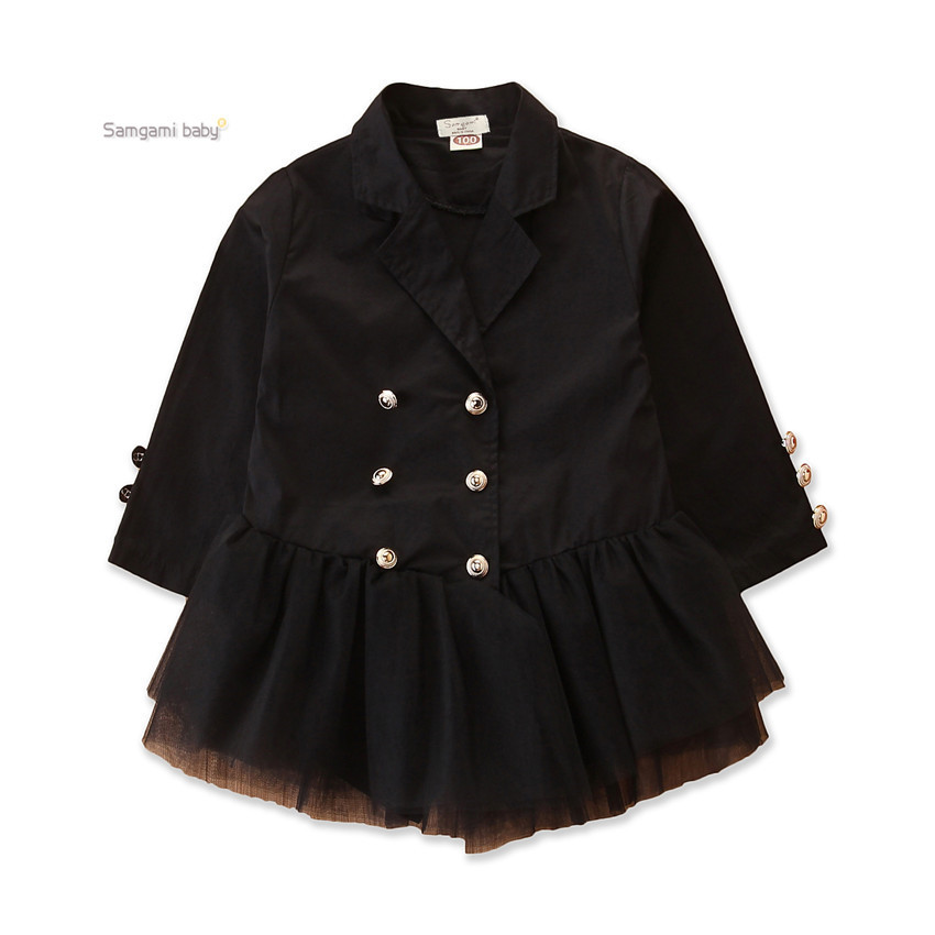 Samgamibaby 아동복 유럽 및 미국 스트리트 패션 옷깃 더블 브레스트 메쉬 코트의 소녀 트렌치 코트스토어 가기