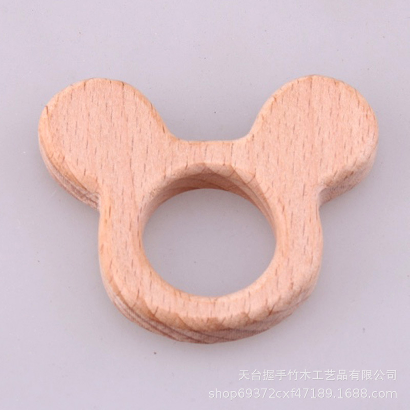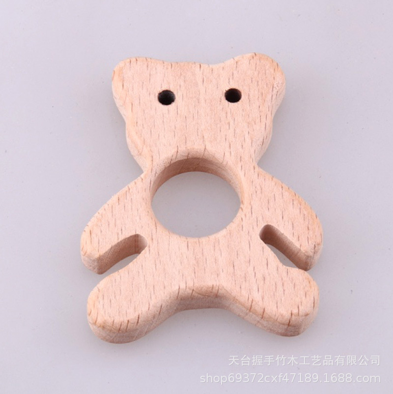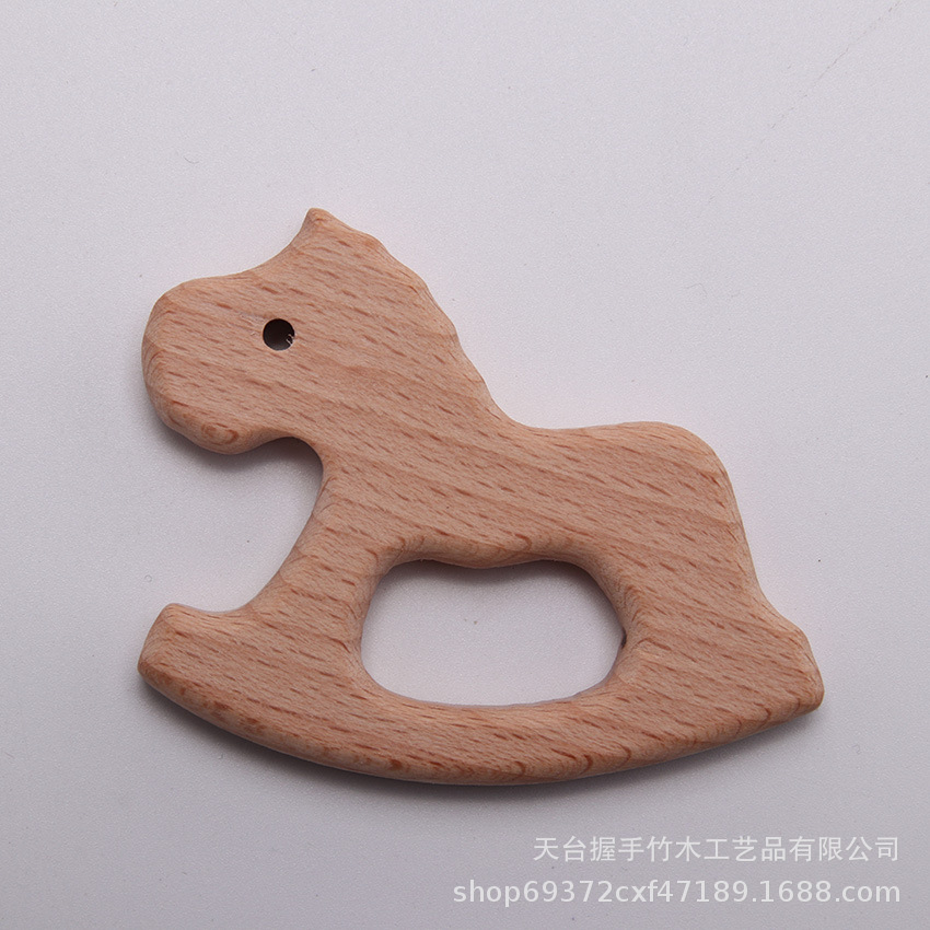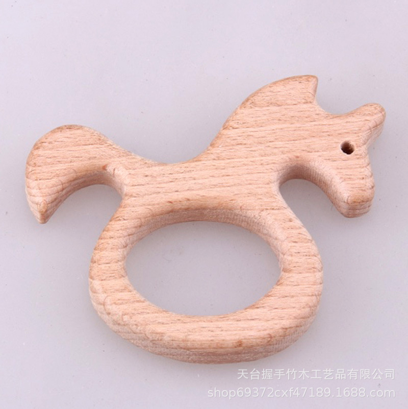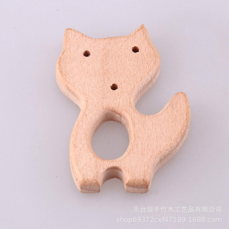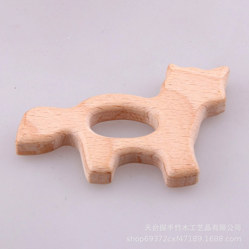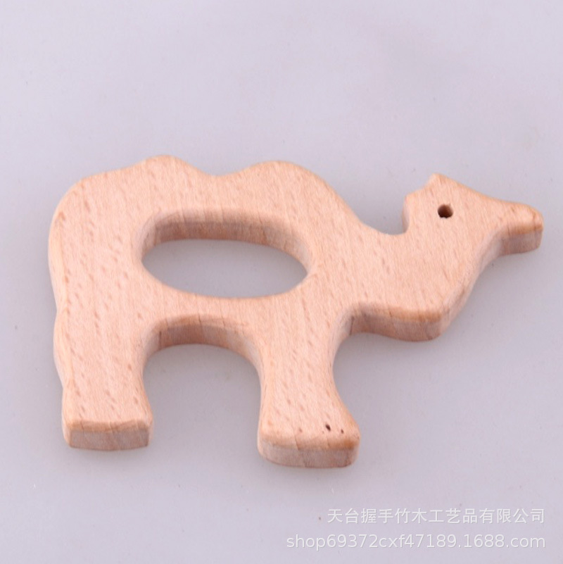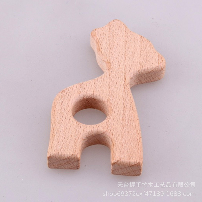 亚马逊热销儿童环保创意榉木卡通动物磨牙玩具婴儿牙咬胶磨棒配件