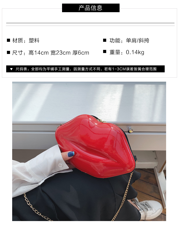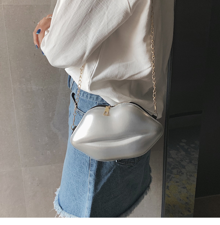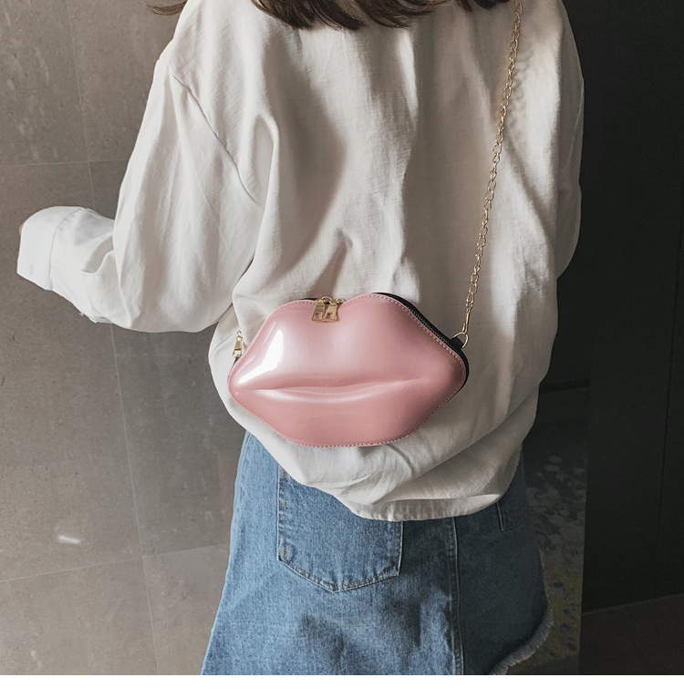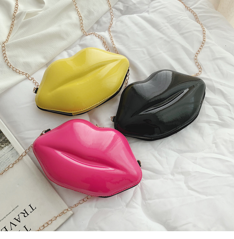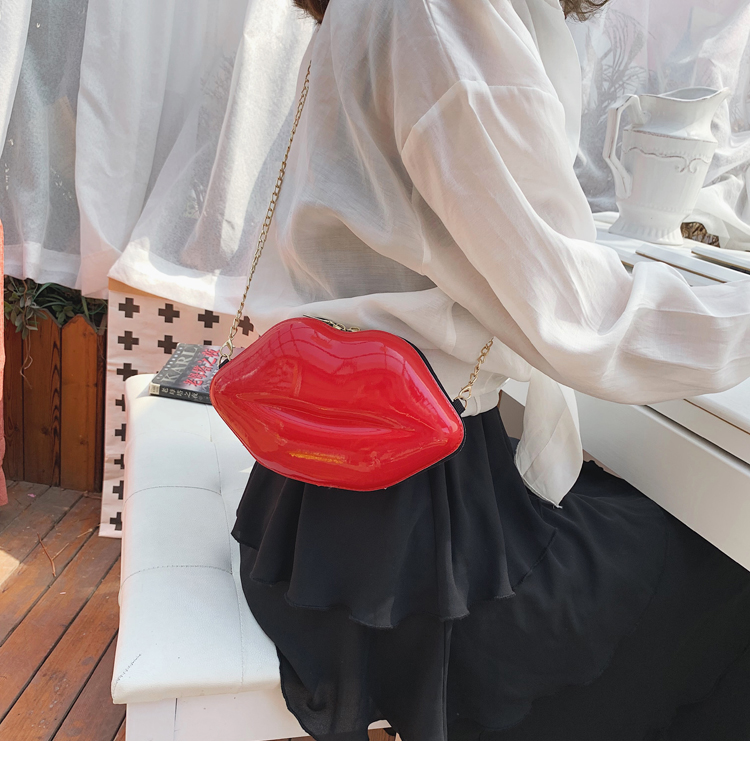 2025년 신상 패션 트렌디한 개성있는 입술 모양 가방 소녀용 래커 체인 숄더백 크로스백 도매스토어 가기