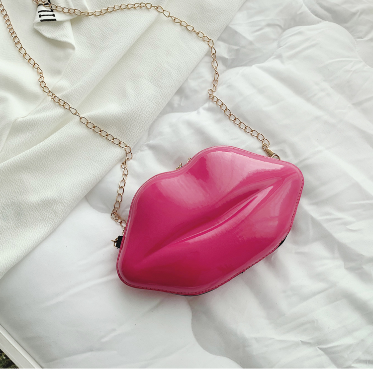 2025년 신상 패션 트렌디한 개성있는 입술 모양 가방 소녀용 래커 체인 숄더백 크로스백 도매