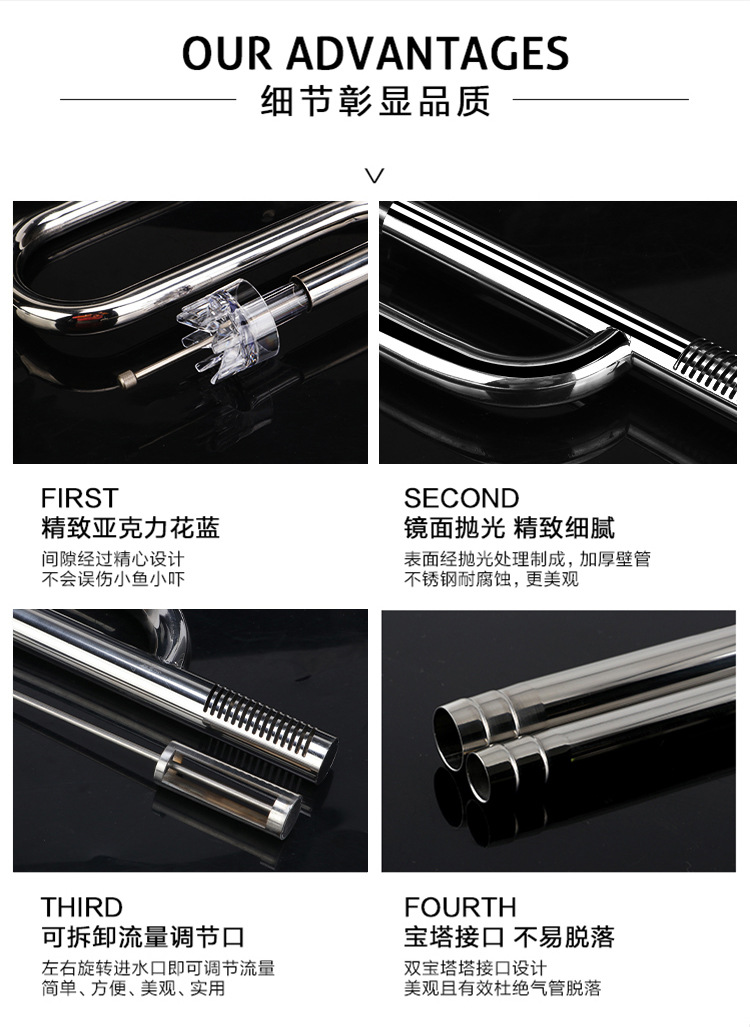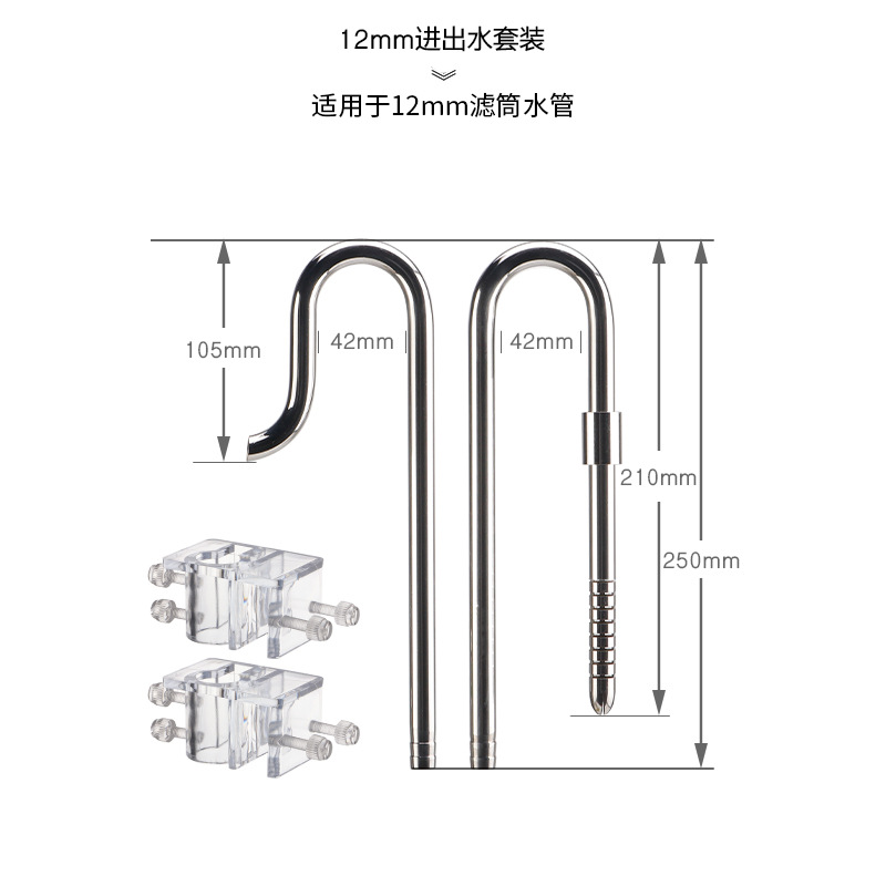수족관 액세서리 물고기 탱크 잔디 탱크 필터 배럴 필터 12/16 스테인레스 스틸 오일 제거 멤브레인 물 입구 및 출구 파이프