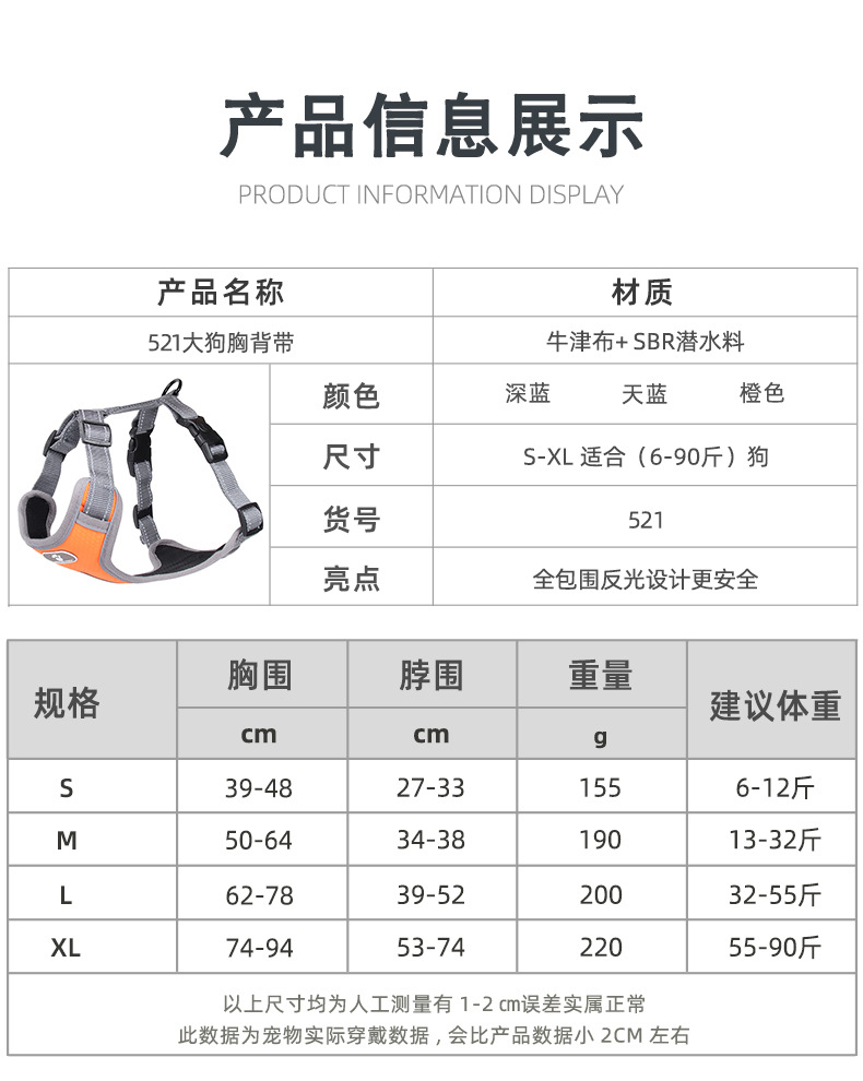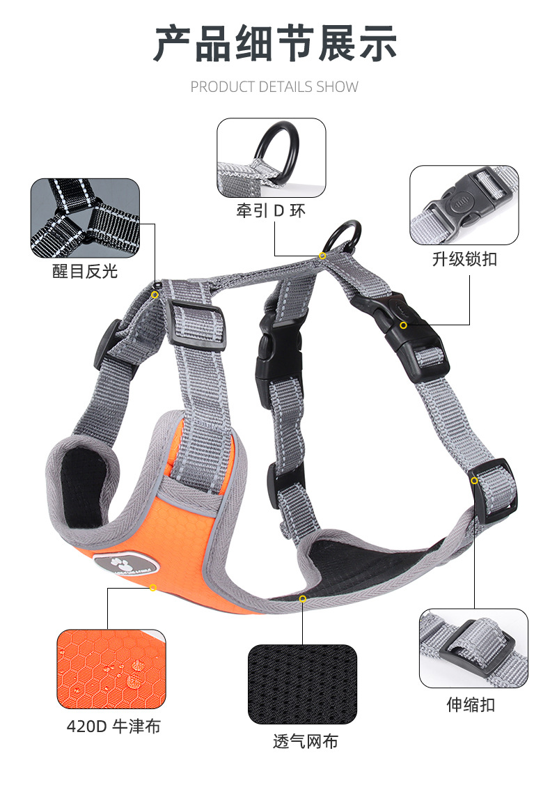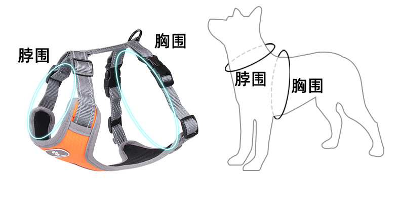 국경 간 개 견인 로프 안티 브레이크 프리 반사 매체 및 대형 개 스트랩 조끼 개 로프 애완 동물 가슴 스트랩