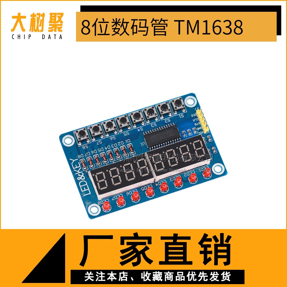 TM1638 按键数码LED显示模块(8位数码\LED\按键)电子模块