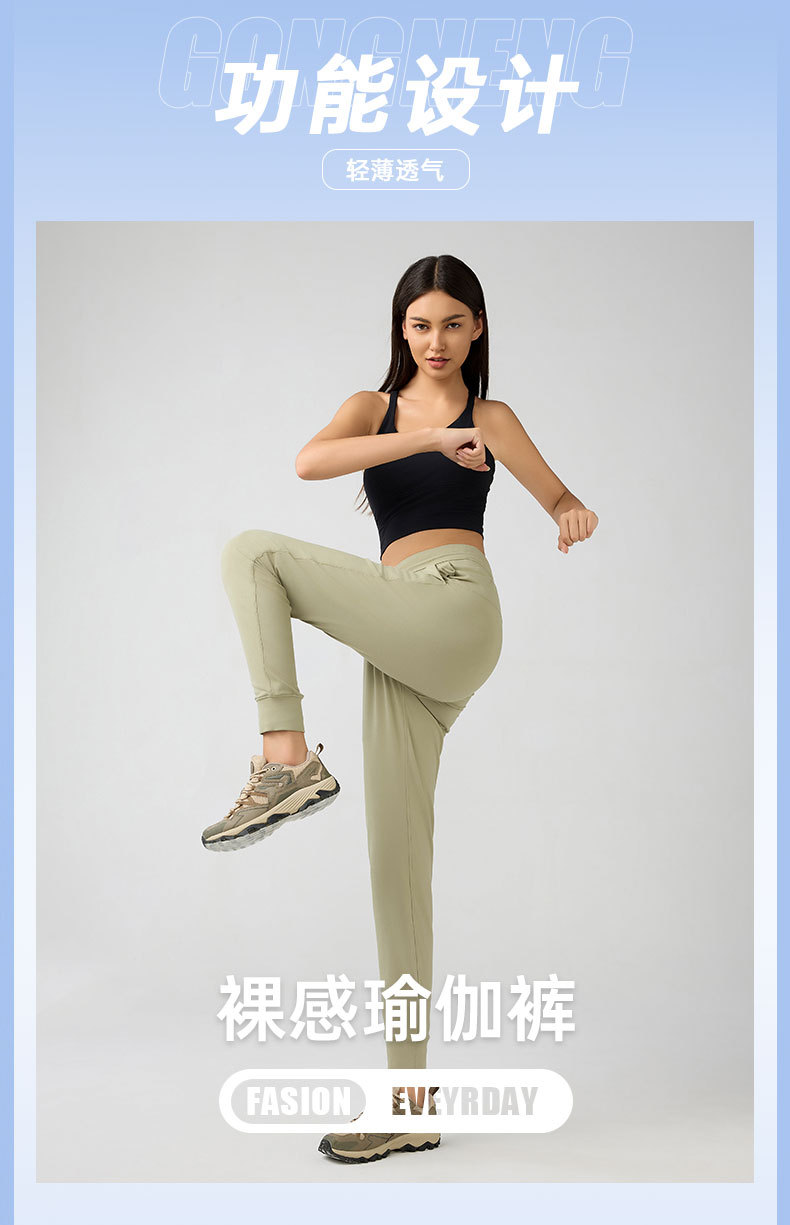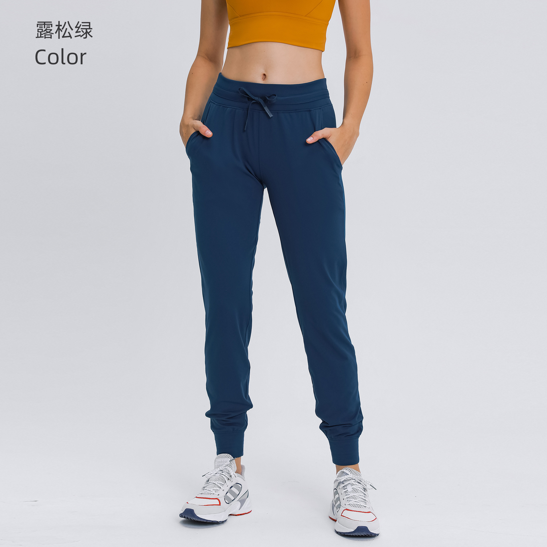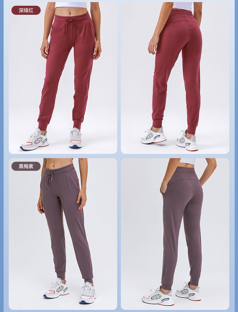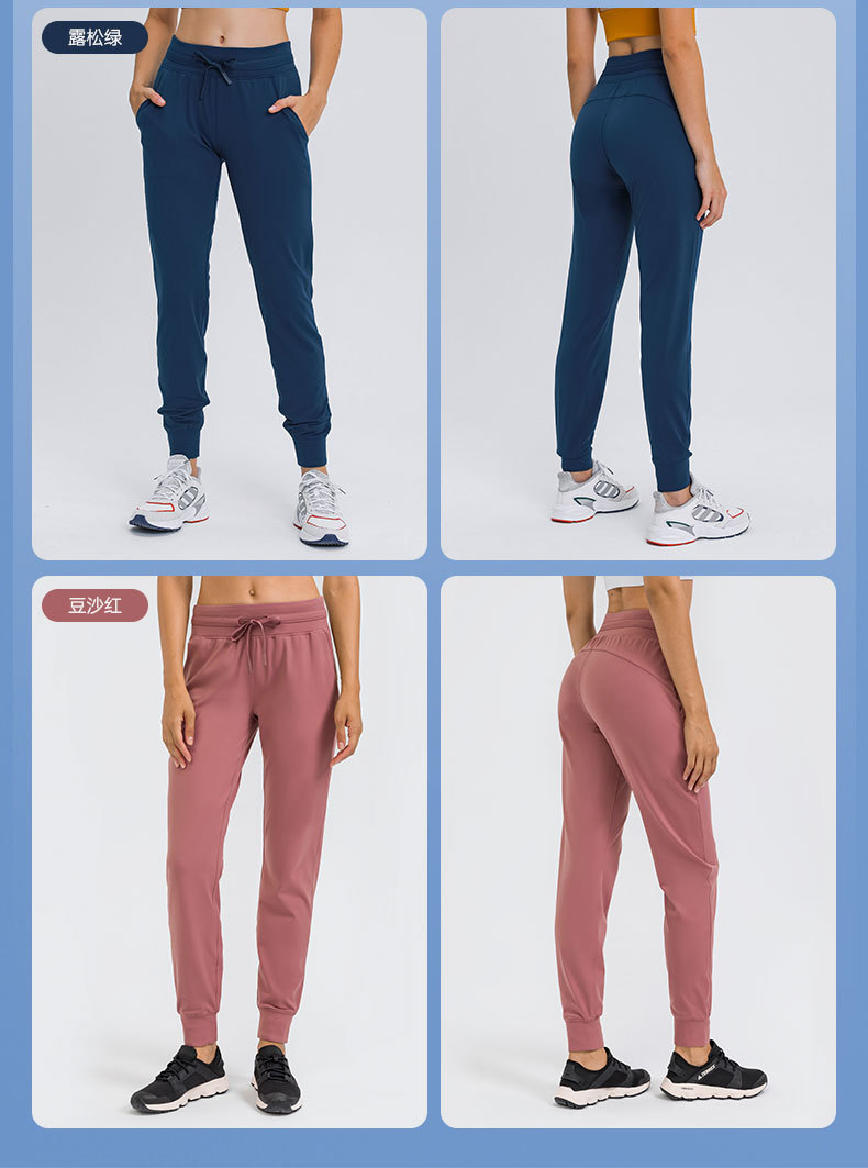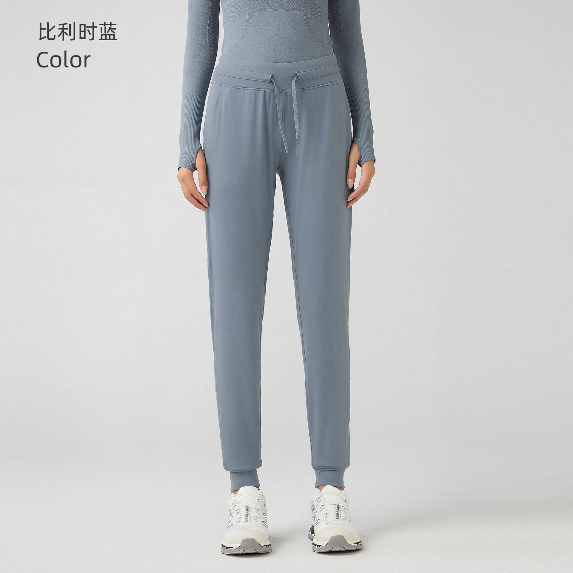 국경 간 하이 웨이스트 요가 바지 여성 드로 스트링 빠른 건조 탄성 달리기 피트니스 바지 슬림 발가락 스포츠 바지 D19069