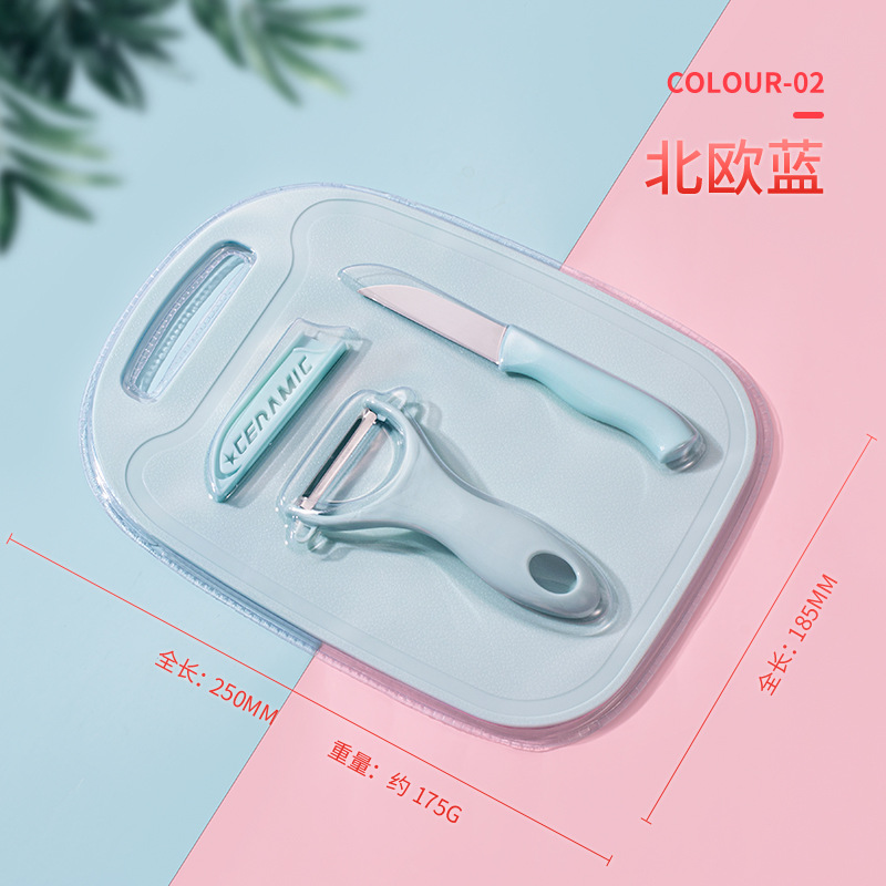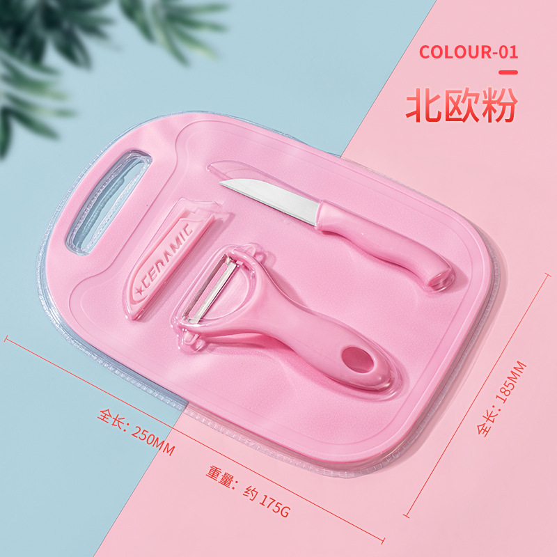 공장 직접 세라믹 칼 3 피스 가정용 과일 칼 세트 창조적 인 멜론 대패 도마 선물 칼 도매스토어 가기