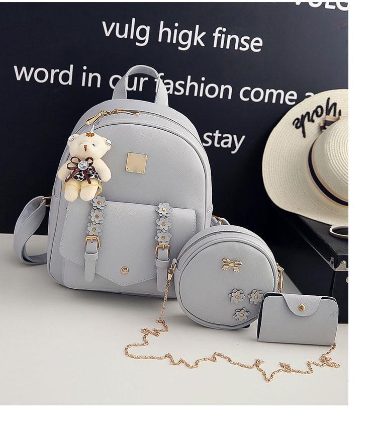 대외 무역 새로운 작은 꽃 벨트 PU 3 피스 배낭 다목적 배낭 학생 학교 가방 캐주얼 다목적 여성 가방