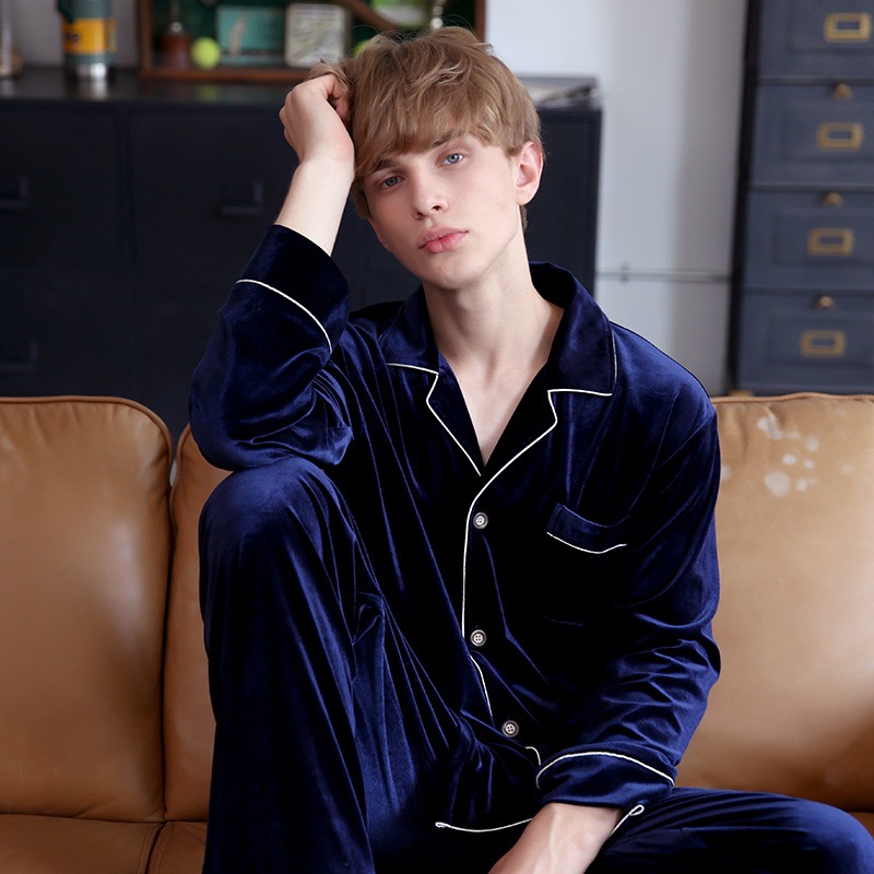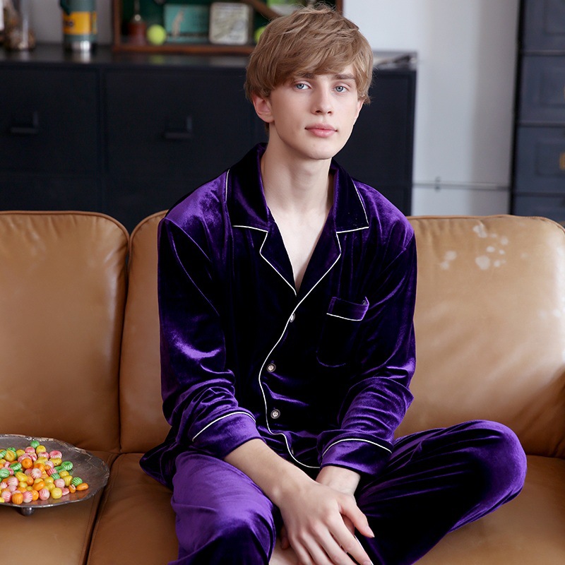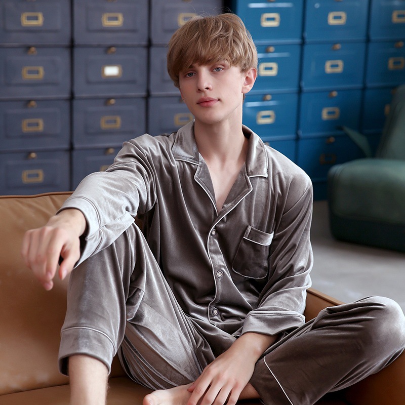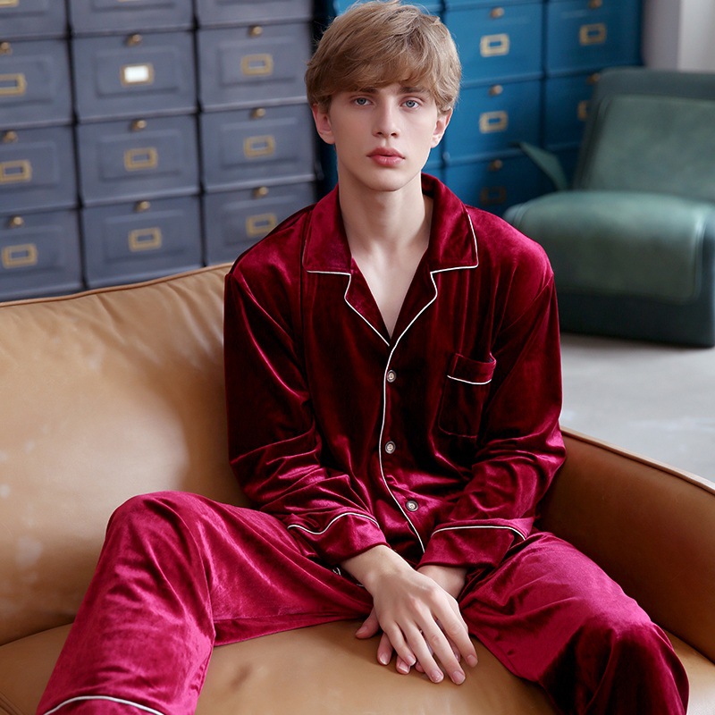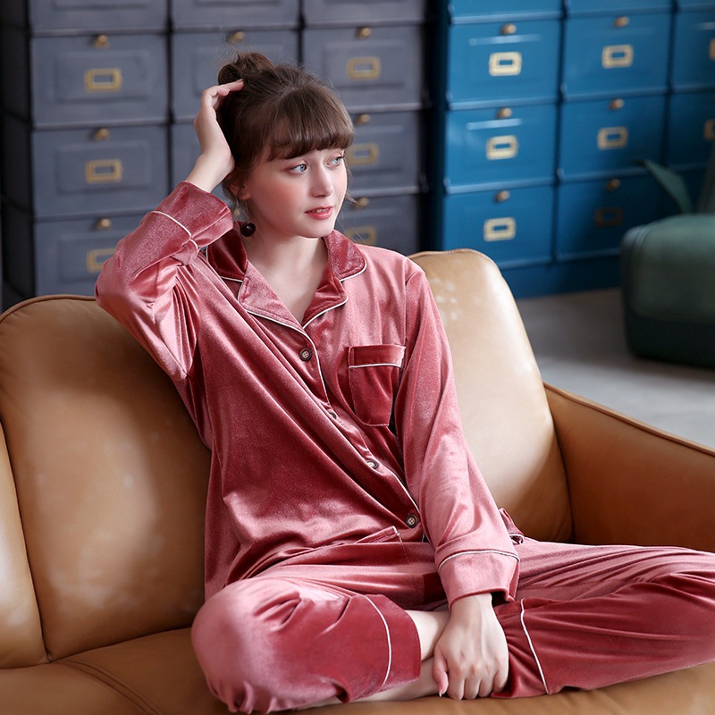 투피스 세트 골든 벨벳 커플 잠옷 여자 봄 가을과 겨울 남자 가정복 긴팔 복장