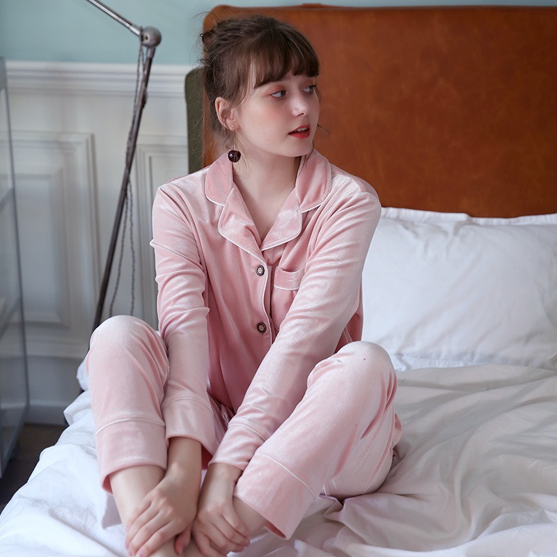 투피스 세트 골든 벨벳 커플 잠옷 여자 봄 가을과 겨울 남자 가정복 긴팔 복장스토어 가기