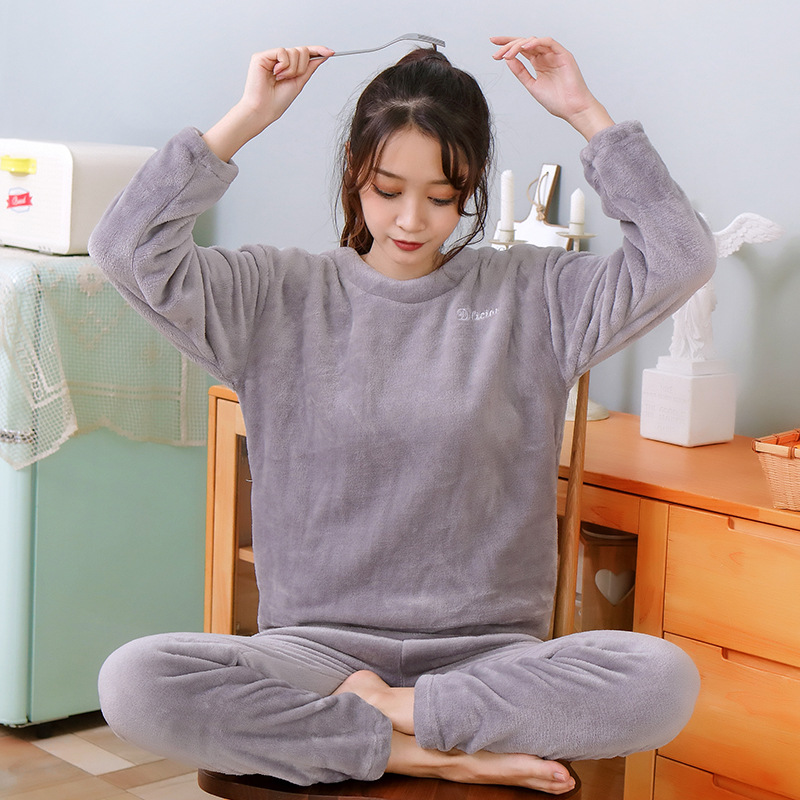 두꺼운 산호 양털 잠옷 세트 여자의 플란넬 가정 옷 가을과 겨울 게으른 단색 요정 따뜻한 바지