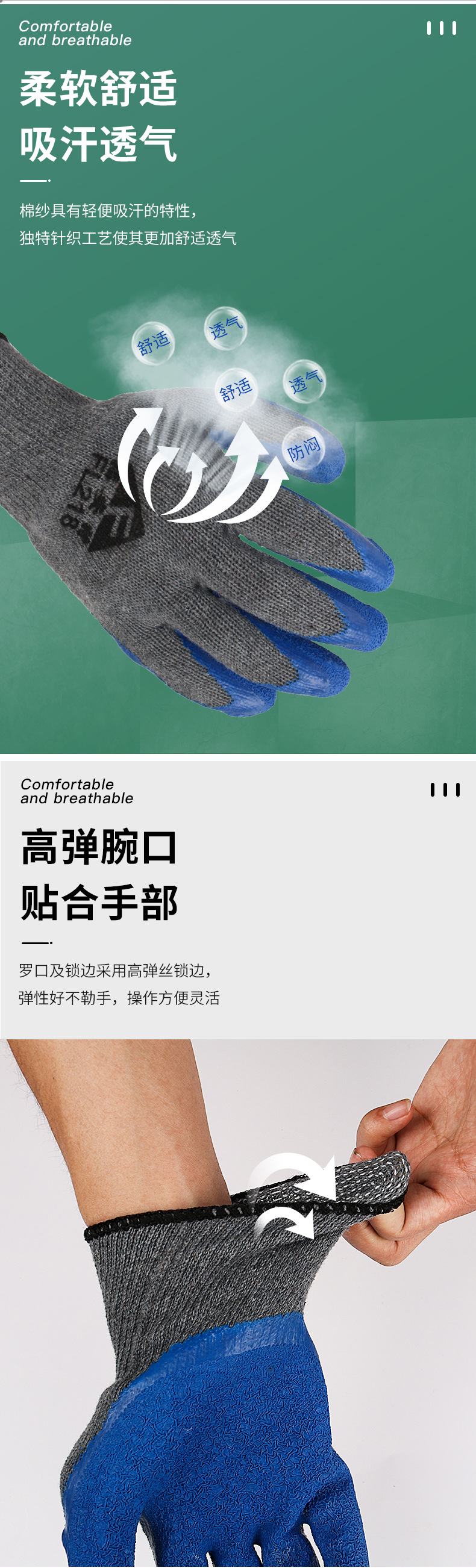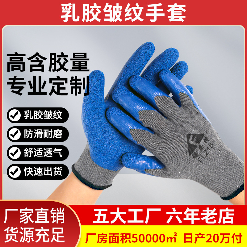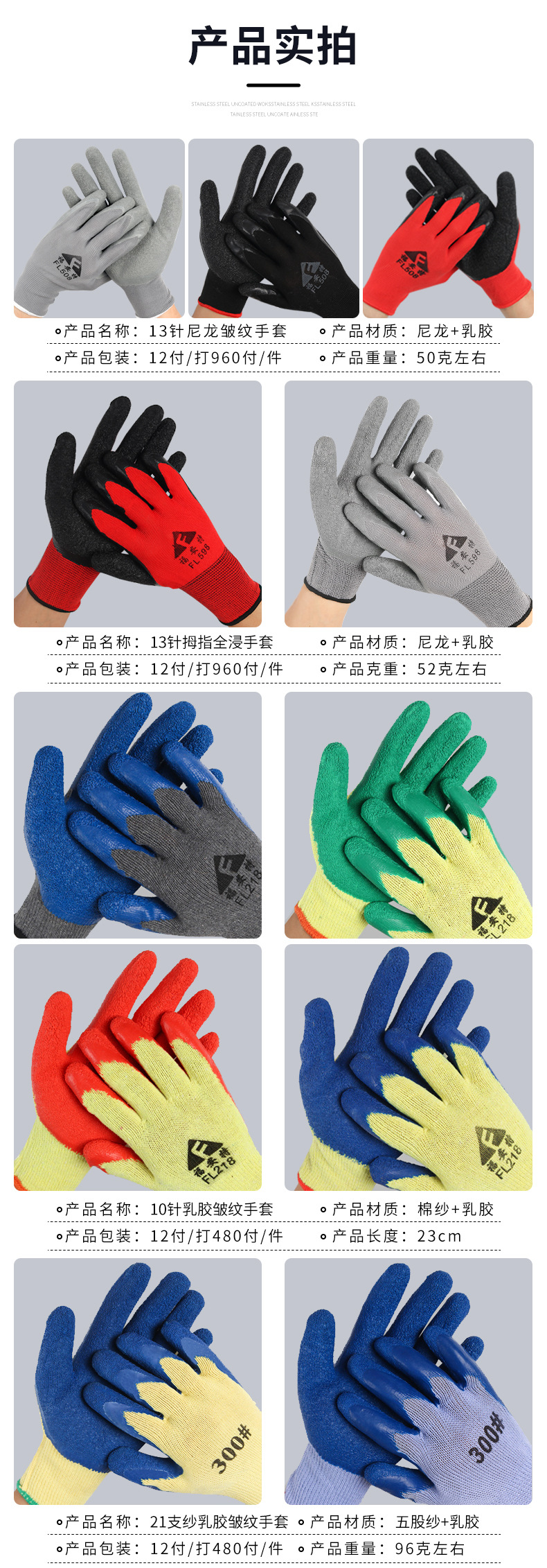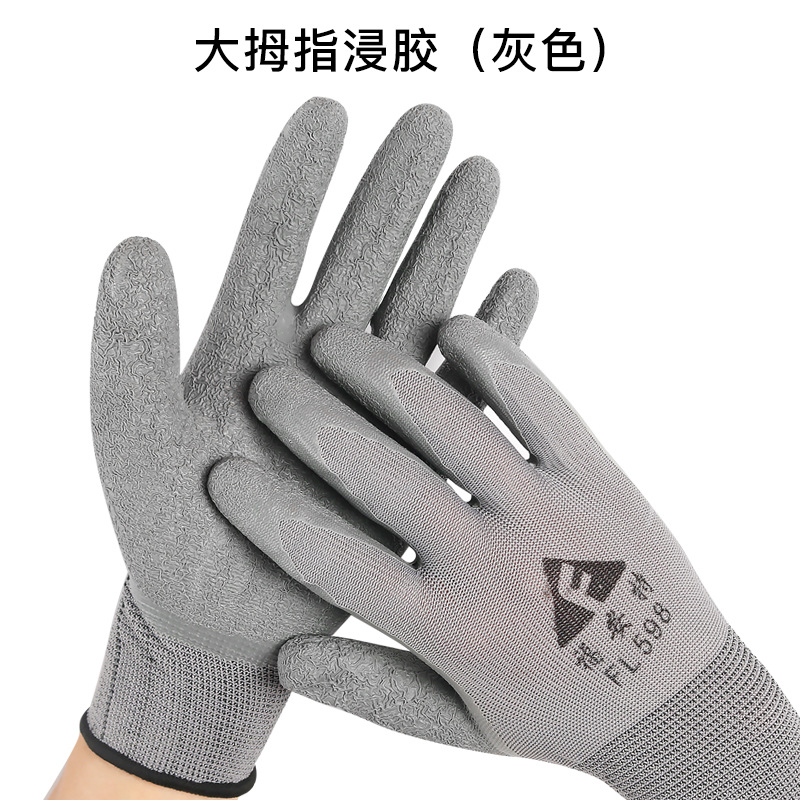 노동 장갑 나일론 라텍스 담근 주름 장갑 내마모성 미끄럼 방지 통기성 작업 장갑 접착제 걸이 장갑스토어 가기