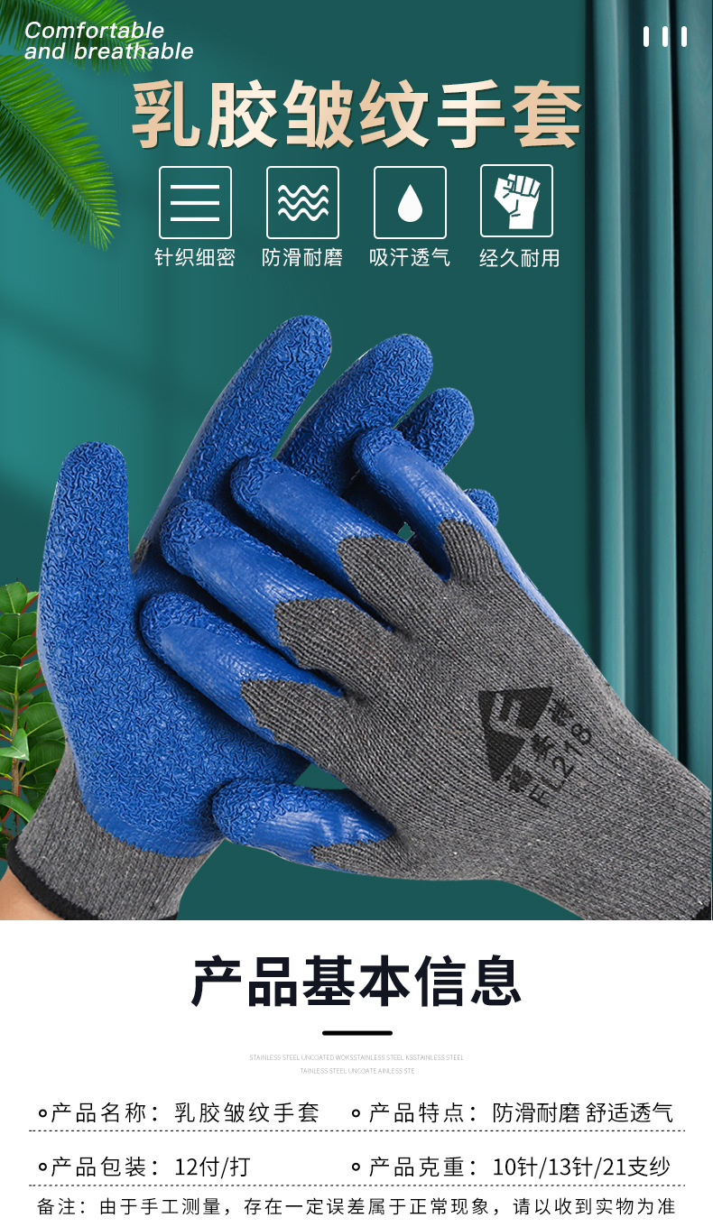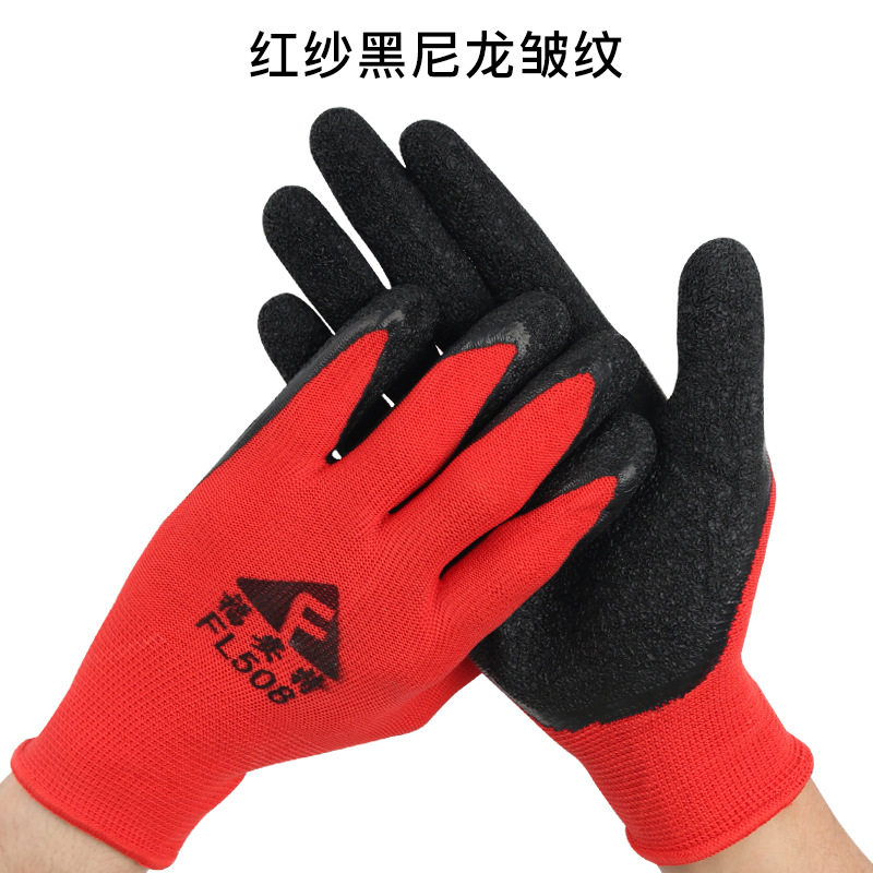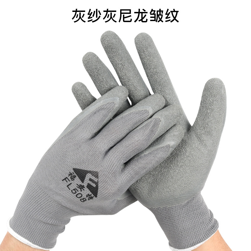 노동 장갑 나일론 라텍스 담근 주름 장갑 내마모성 미끄럼 방지 통기성 작업 장갑 접착제 걸이 장갑