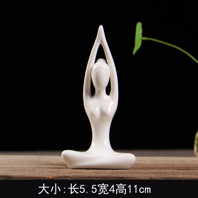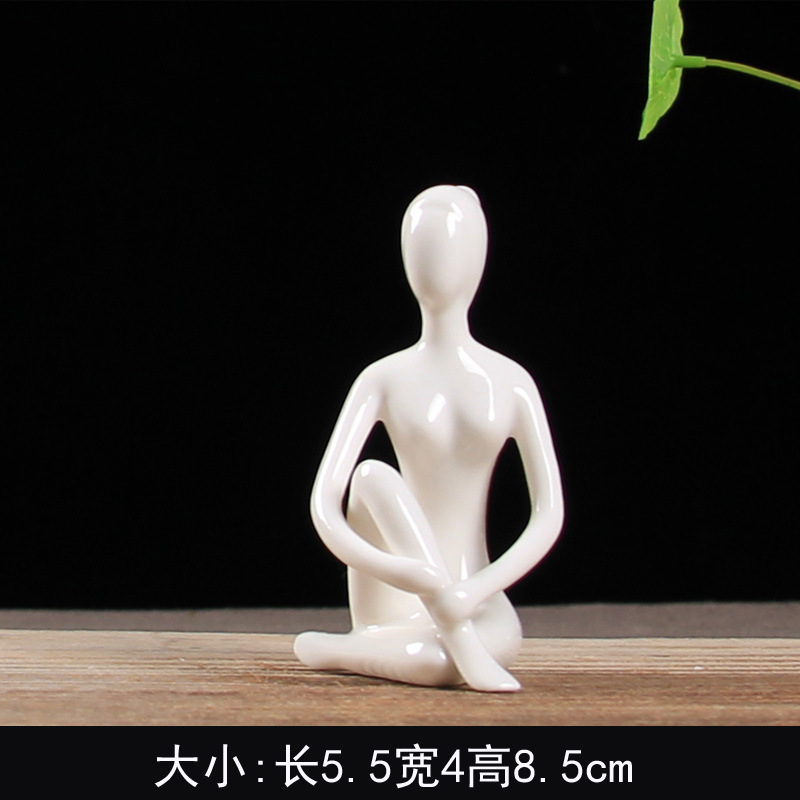 Yuxuan 현대 간단한 창조적 인 요가 소녀 작은 장식품 세라믹 공예 홈 추상 그림 벽 캐비닛 장식