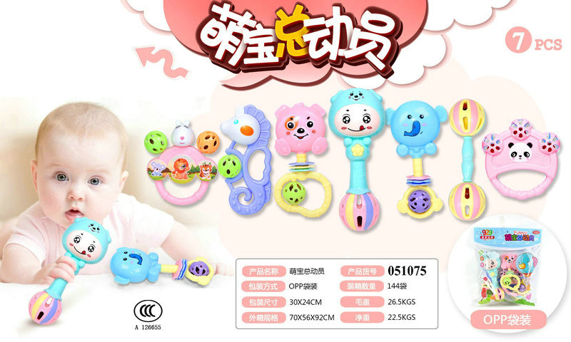 모에 바오 작은 딸랑이 세트 7 피스 세트 유아 장난감 조기 교육 아기 딸랑이 소년 소녀 교육 완구스토어 가기