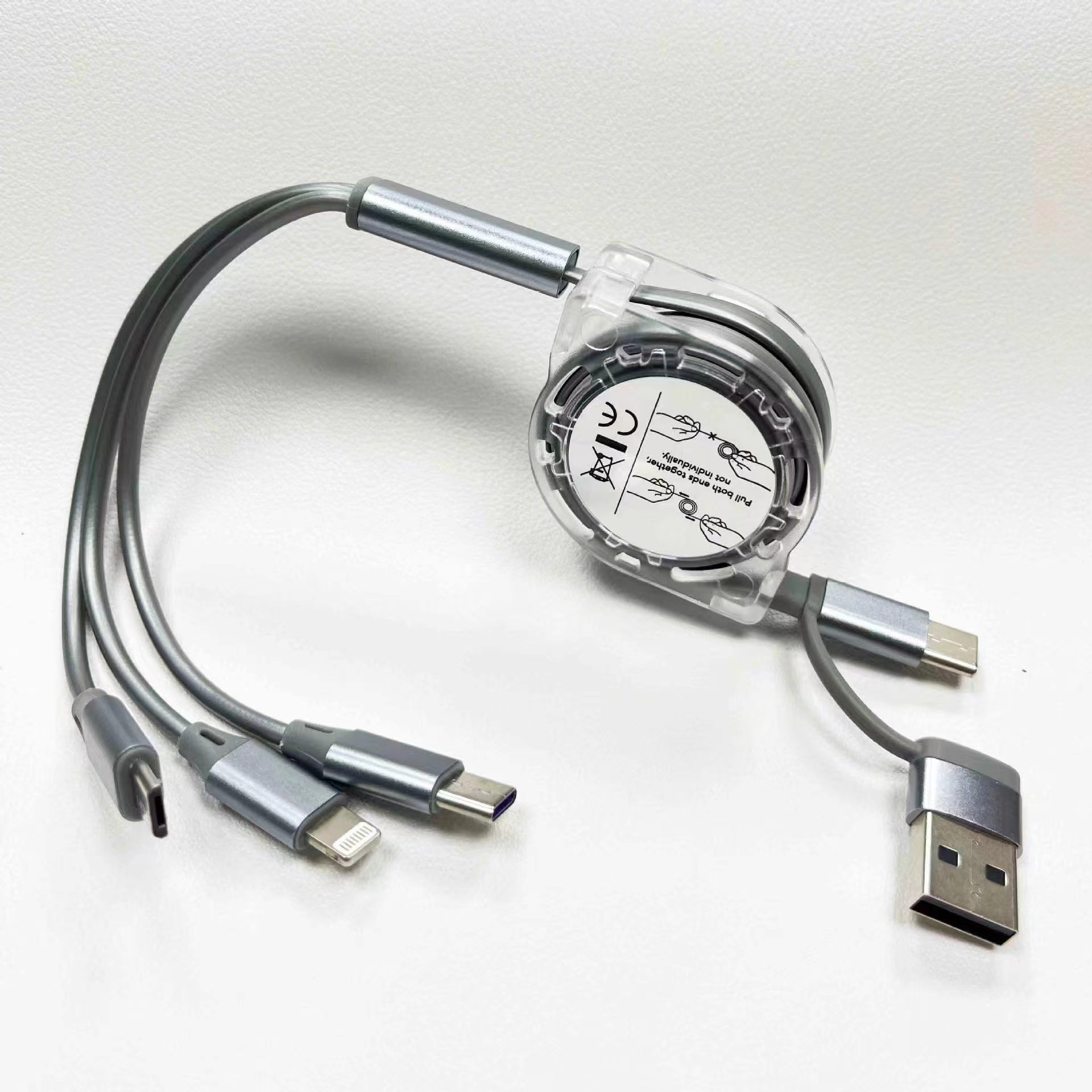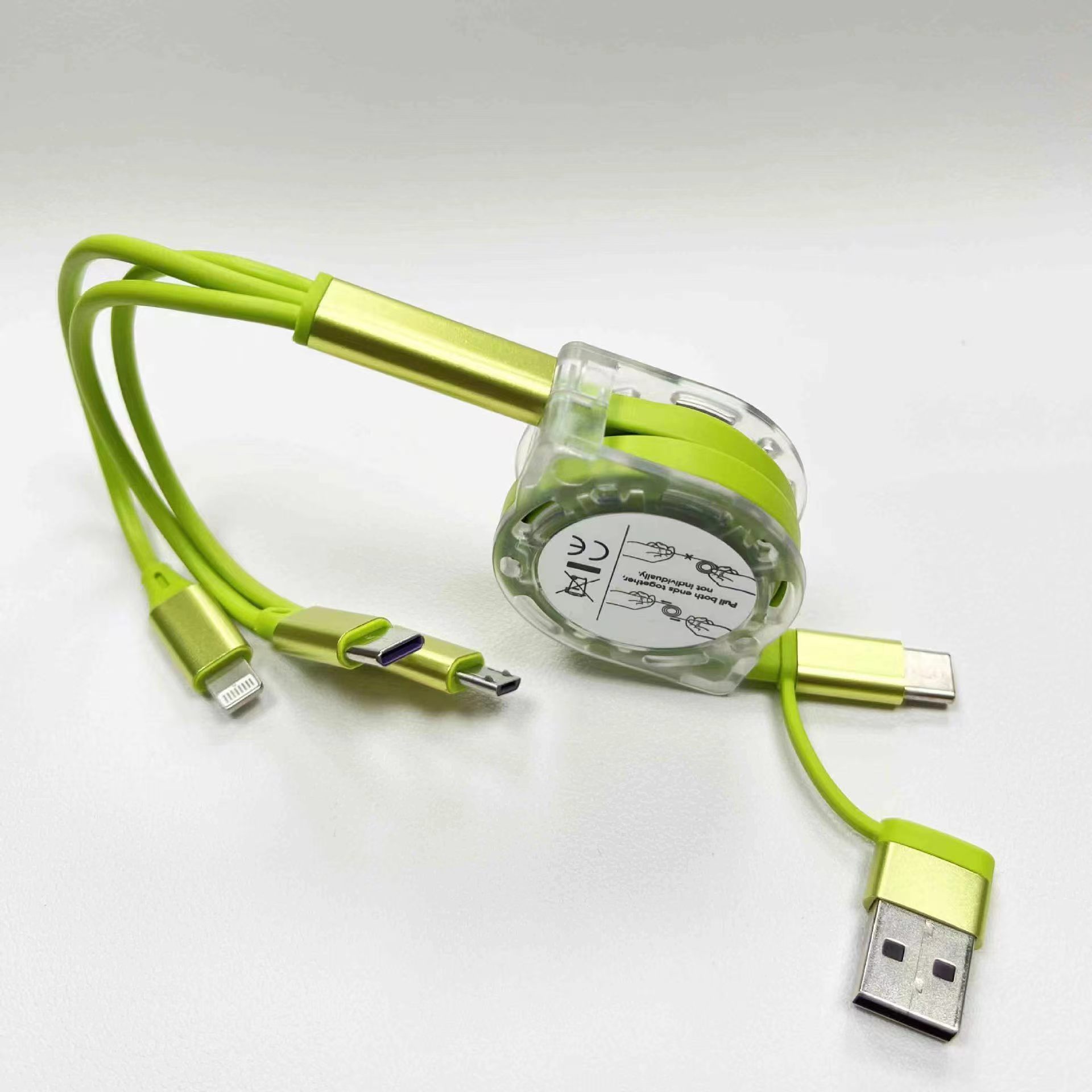 2024 창조적 인 선물 1-3 개폐식 데이터 케이블 3-in-1 다기능 저장 충전 케이블 도매