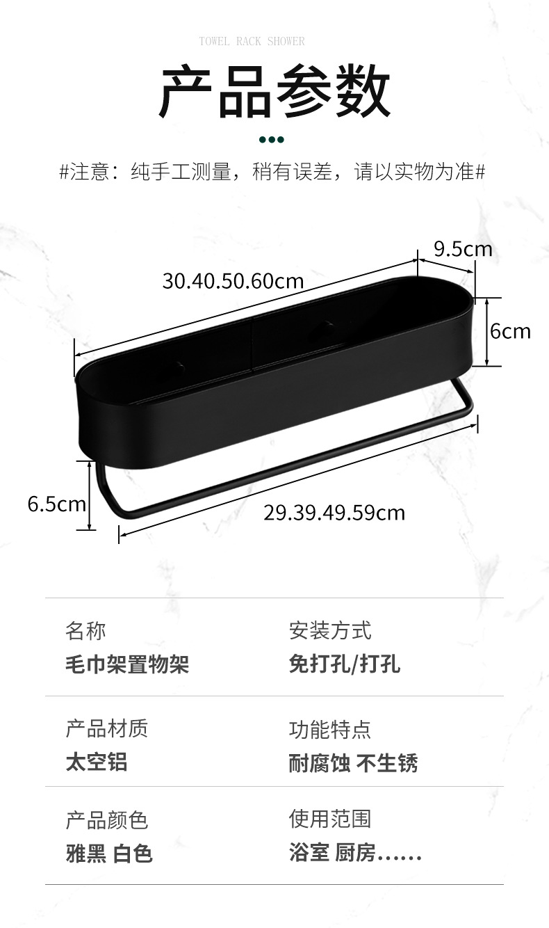 욕실 무타공 미끄럼 방지 화장품 정리 선반, 욕실용 두꺼운 수건걸이 수납 선반, 배송 대행