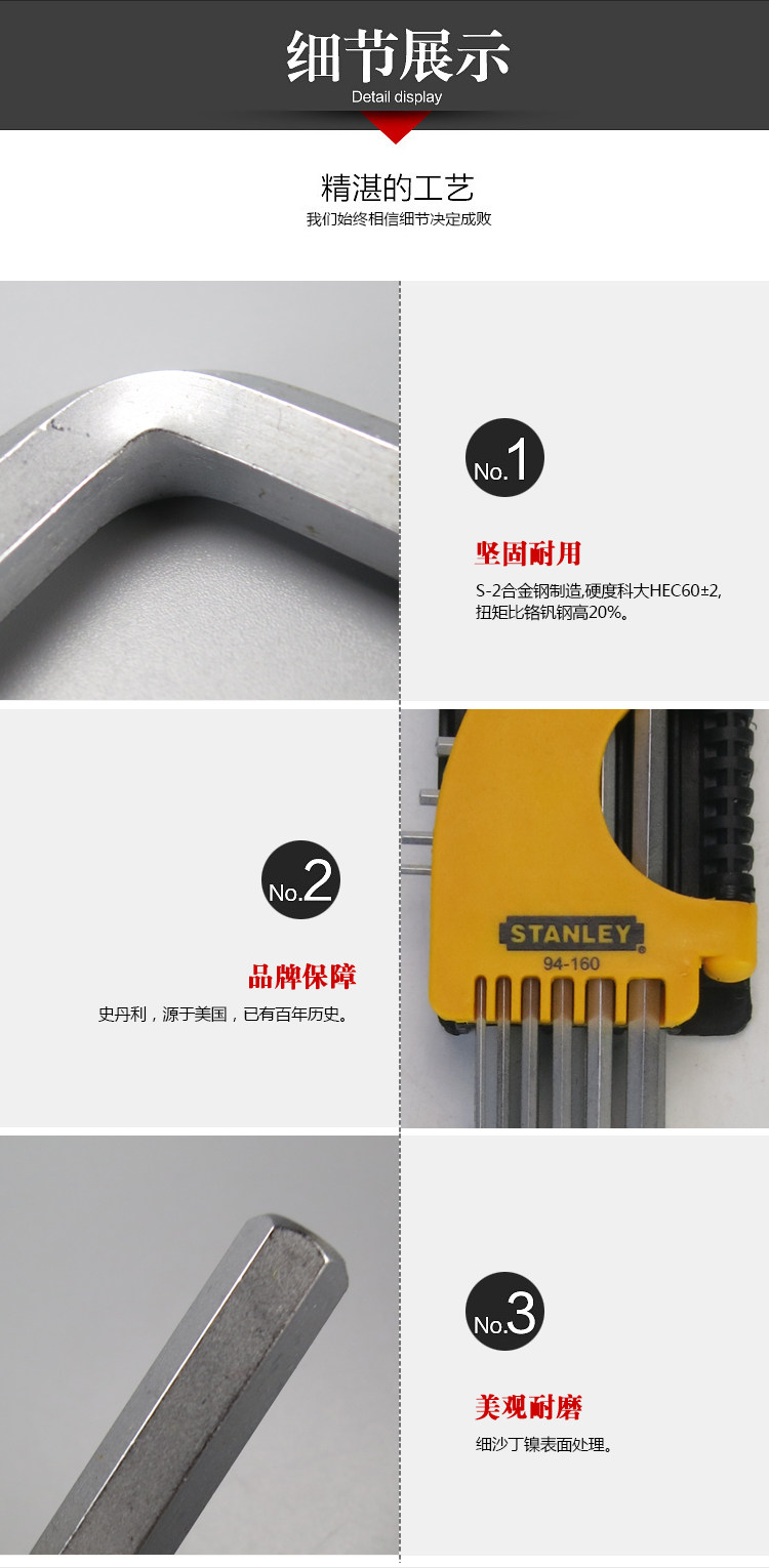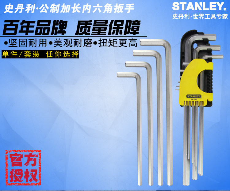 스탠리 미터법 긴 플랫 헤드 육각 렌치 세트 단일 육각 손 육각 렌치
